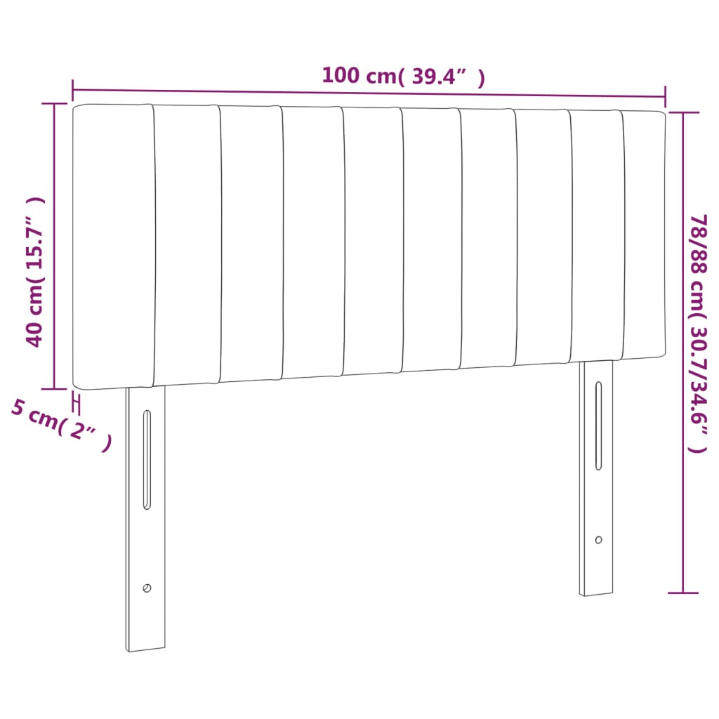 sötétszürke bársony LED-es fejtámla 100x5x78/88 cm