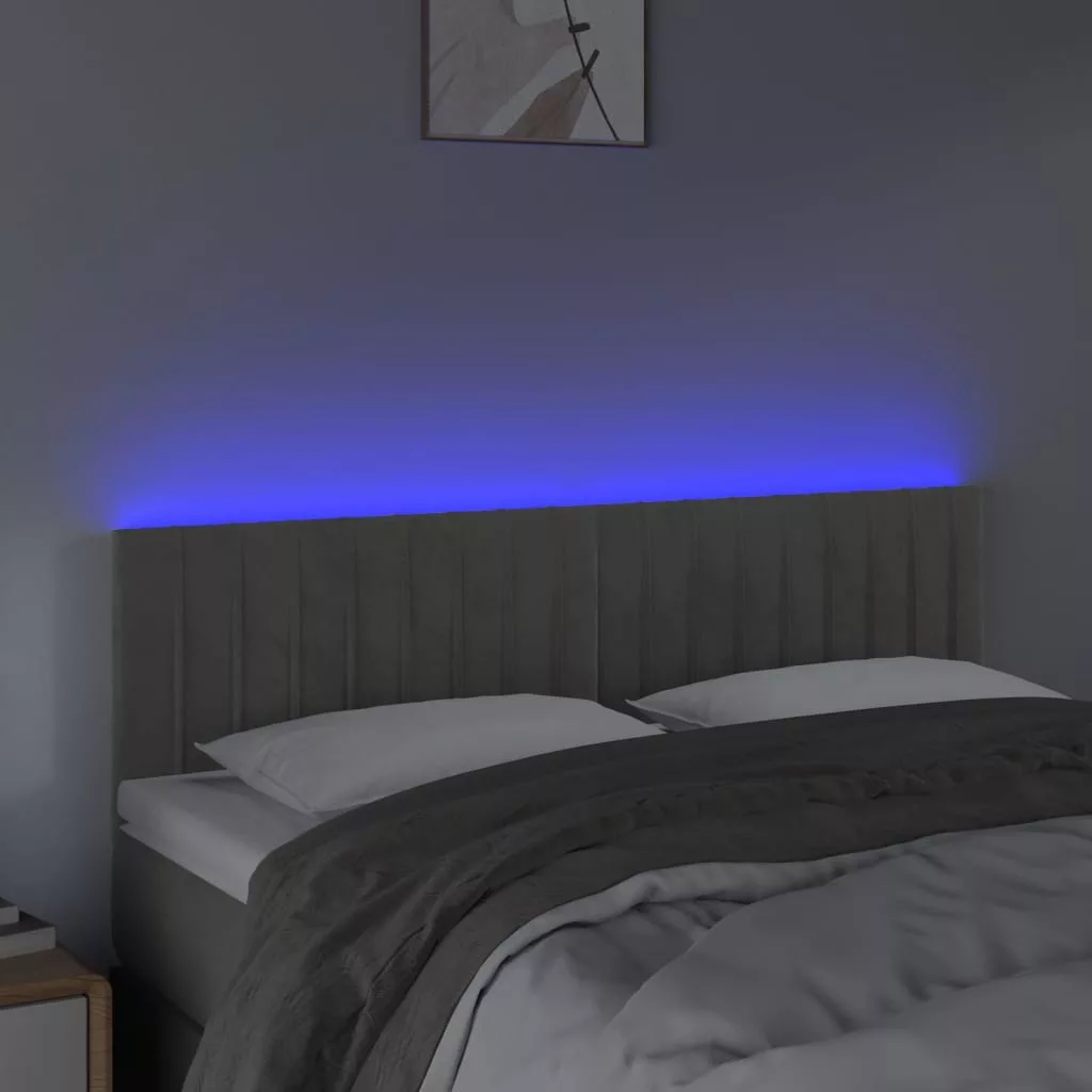 világosszürke bársony LED-es fejtámla 144x5x78/88 cm