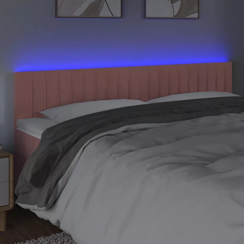 rózsaszín bársony LED-es fejtámla 200x5x78/88 cm