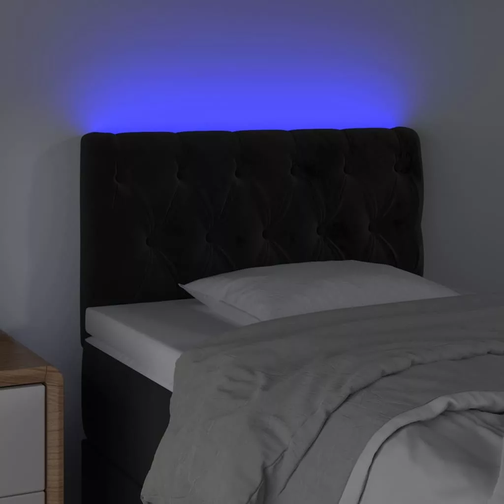 fekete bársony LED-es fejtámla 80 x 7 x 78/88 cm