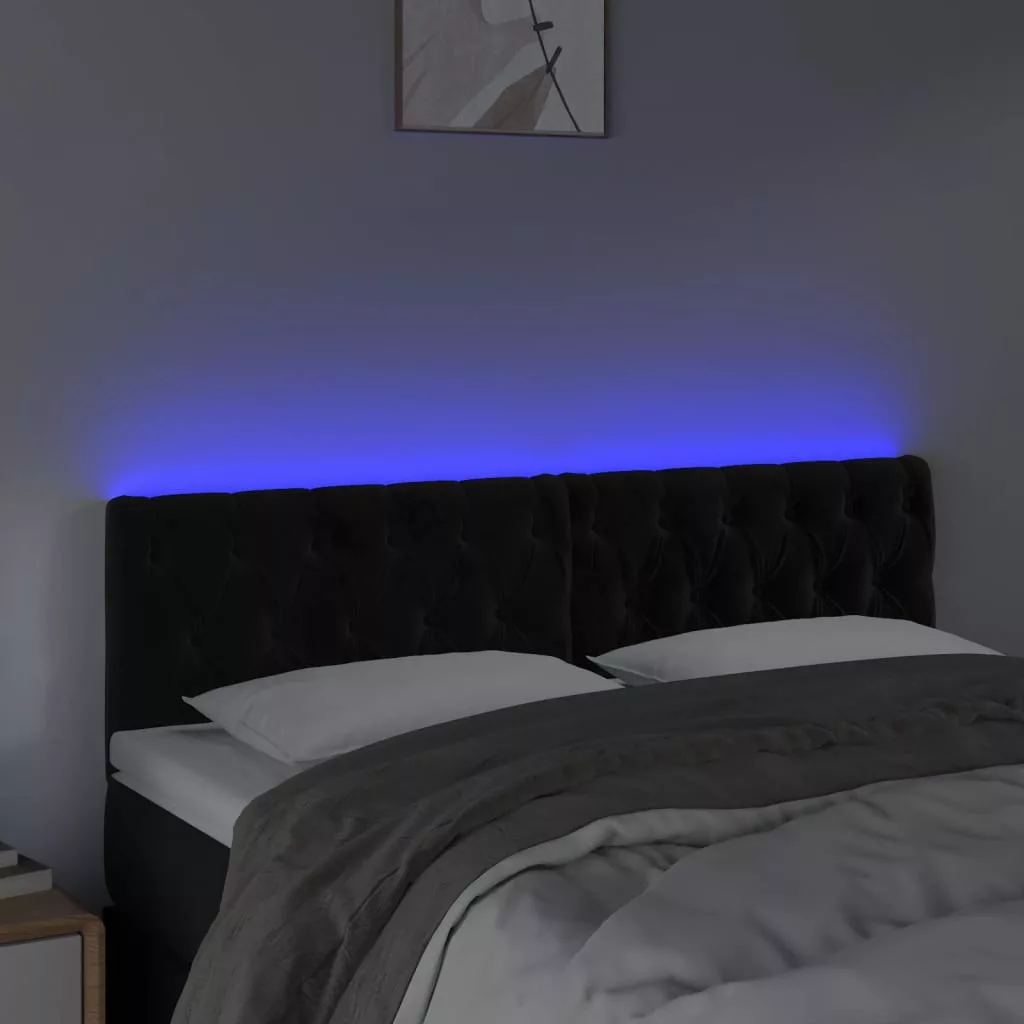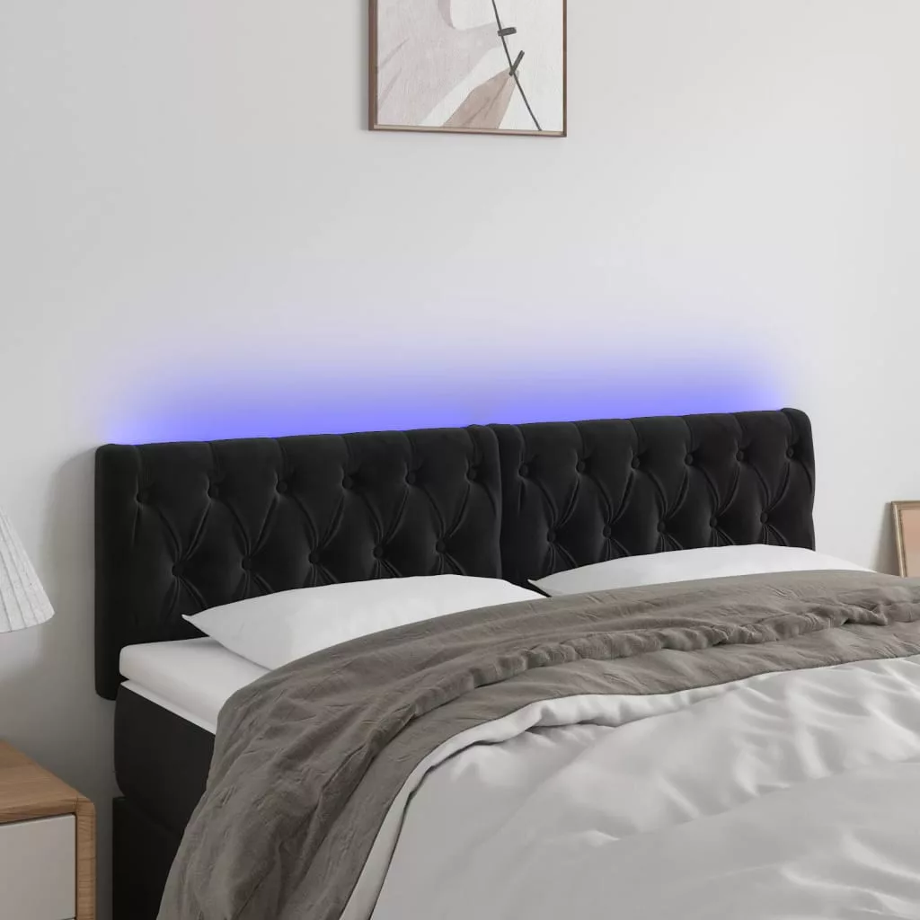 fekete bársony LED-es fejtámla 160 x 7 x 78/88 cm