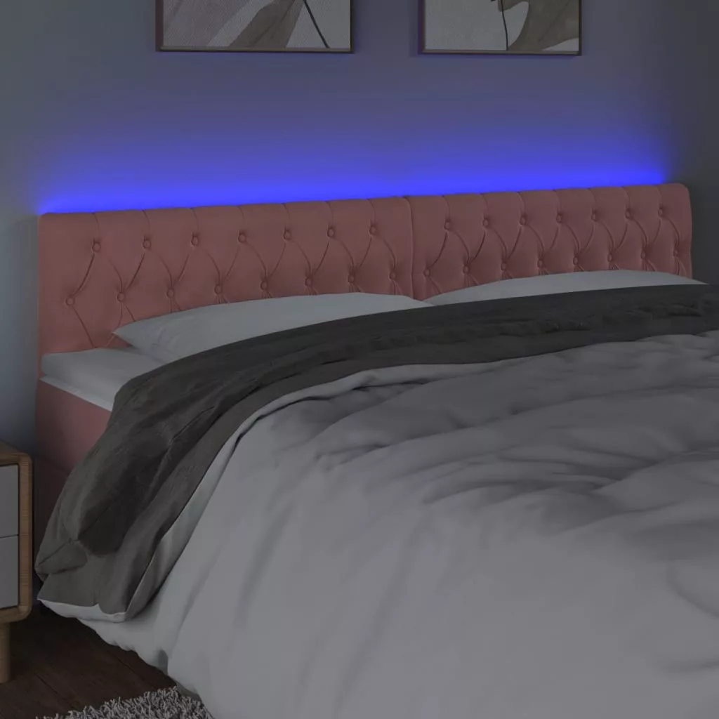 rózsaszín bársony LED-es fejtámla 200 x 7 x 78/88 cm