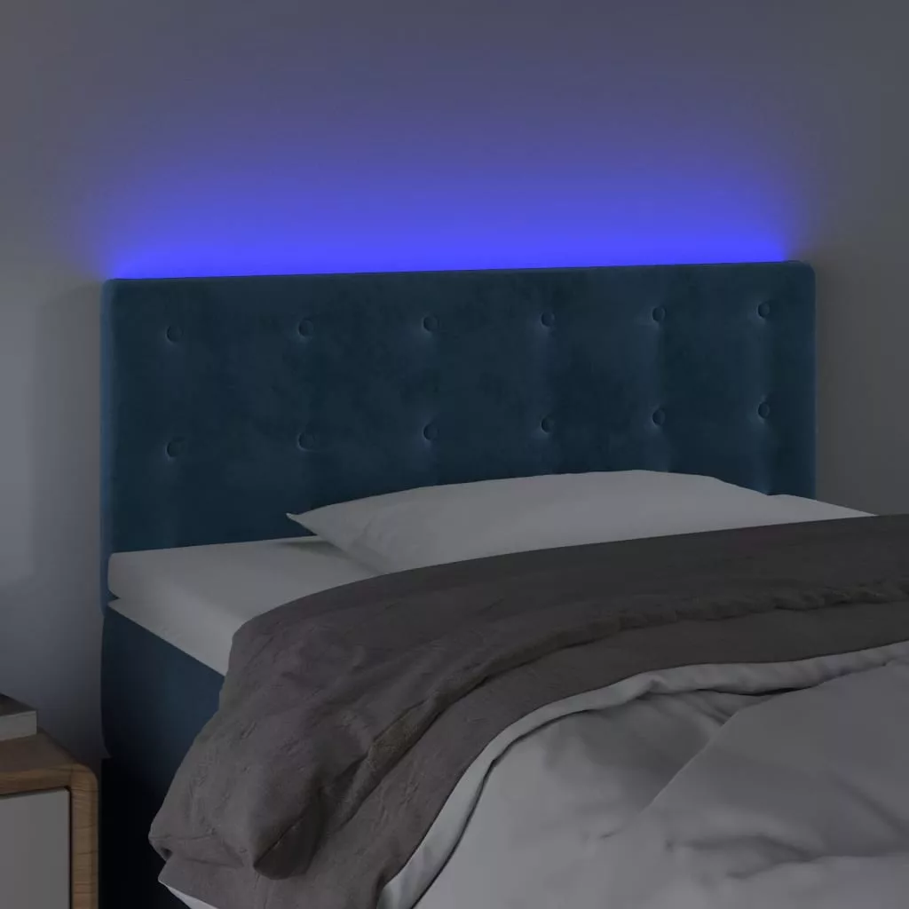 sötétkék bársony LED-es fejtámla 100x5x78/88 cm