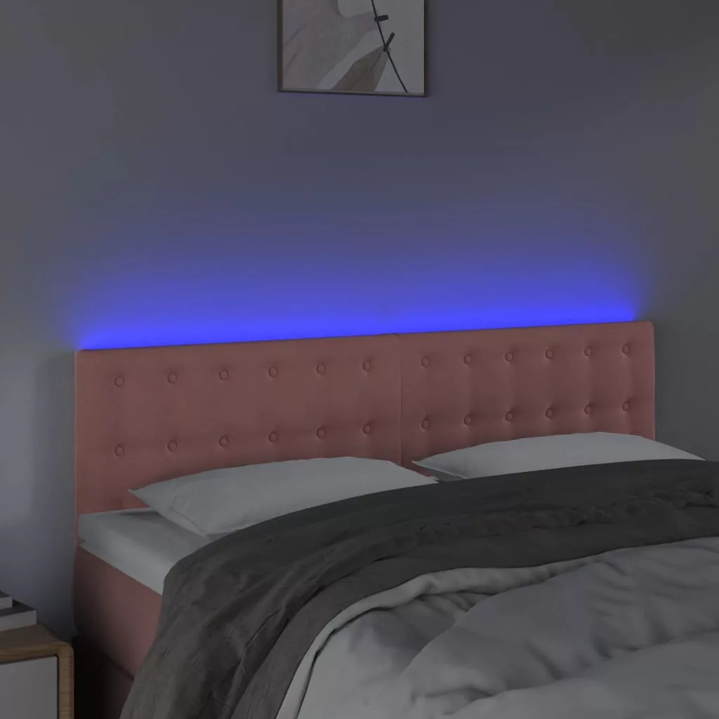 rózsaszín bársony LED-es fejtámla 144x5x78/88 cm