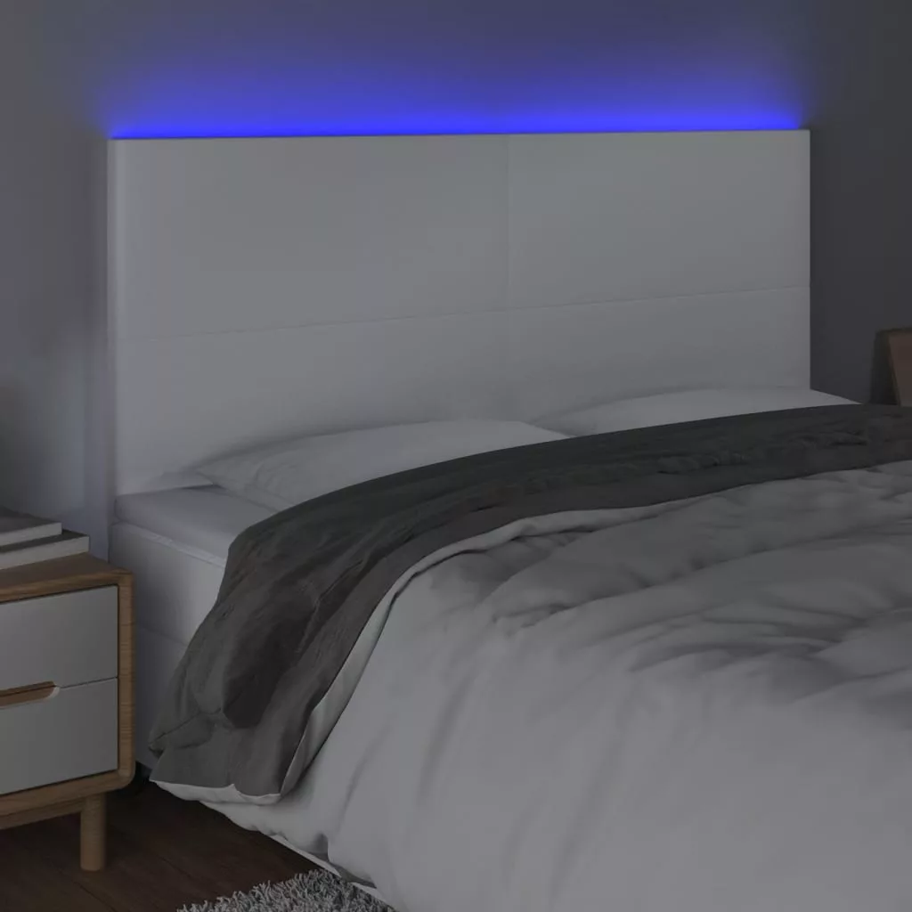fehér műbőr LED-es fejtámla 180x5x118/128 cm