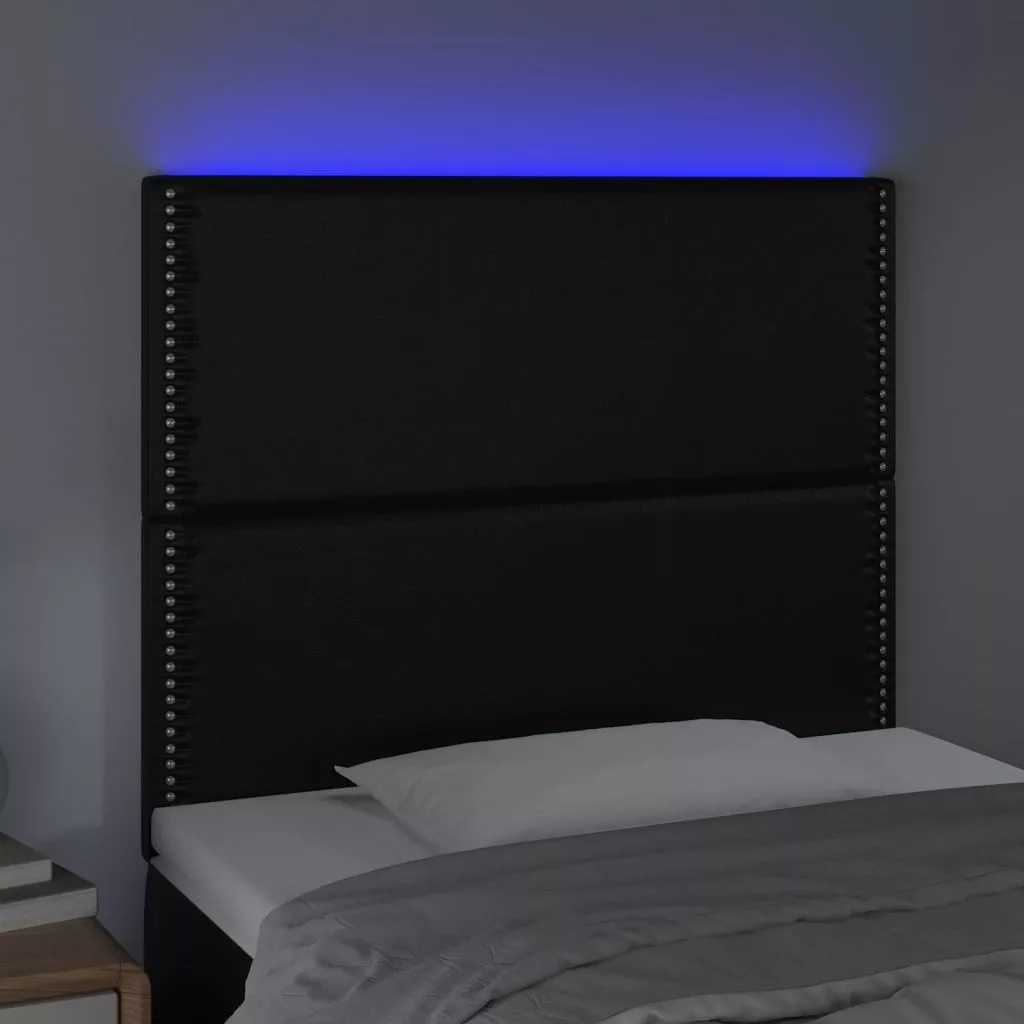 fekete műbőr LED-es fejtámla 100x5x118/128 cm