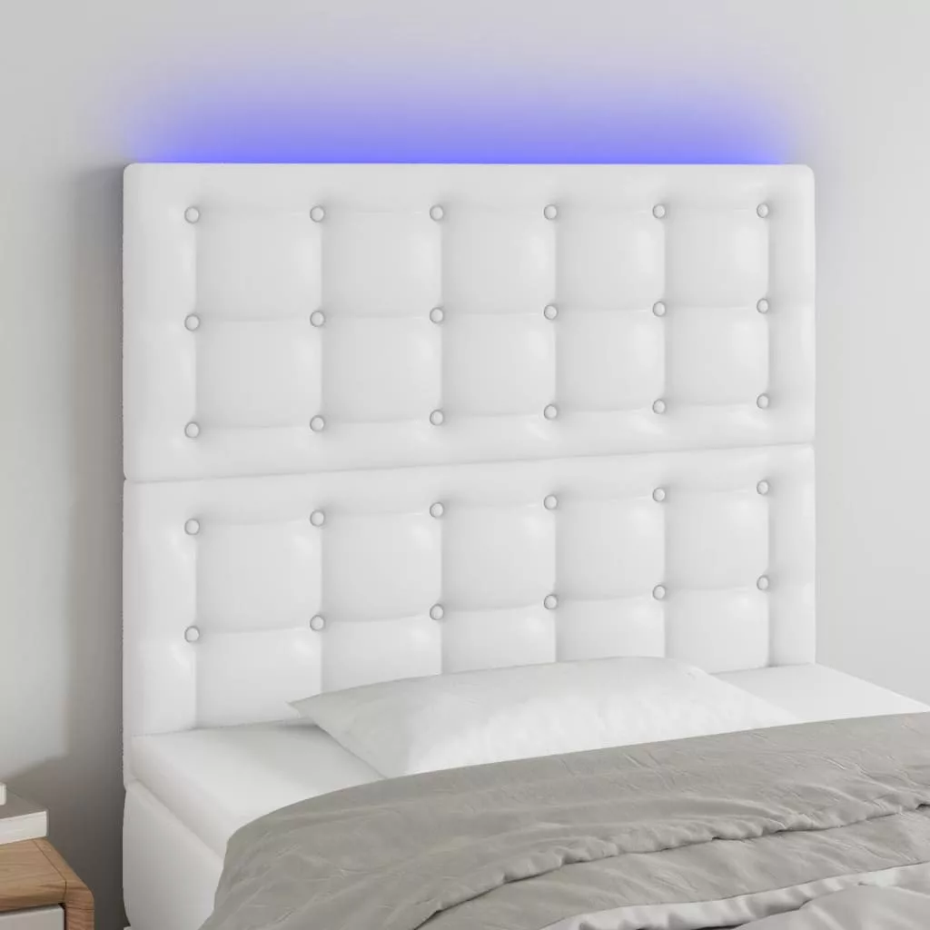 fehér műbőr LED-es fejtámla 90x5x118/128 cm