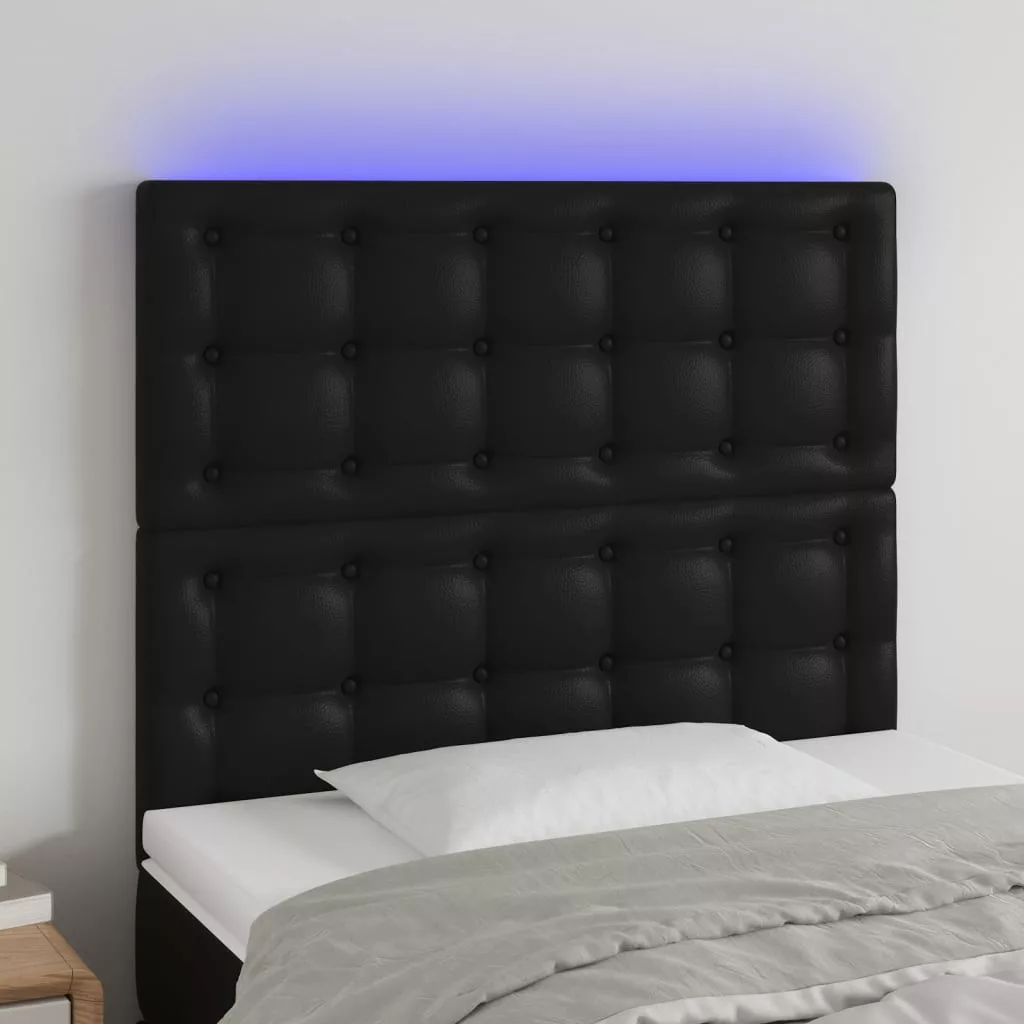 fekete műbőr LED-es fejtámla 100x5x118/128 cm