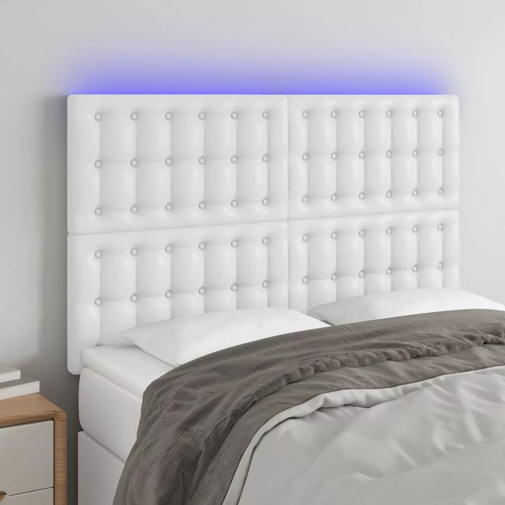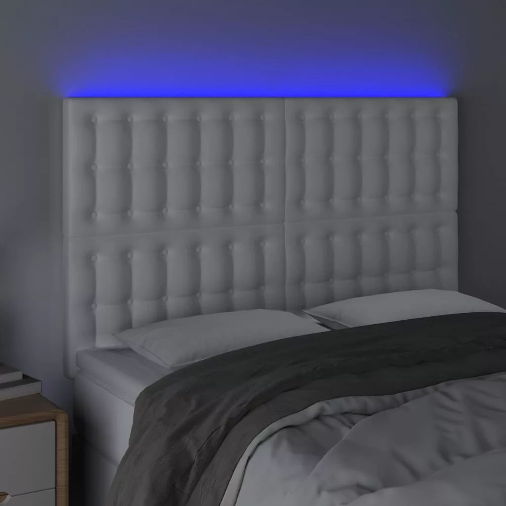 fehér műbőr LED-es fejtámla 144x5x118/128 cm