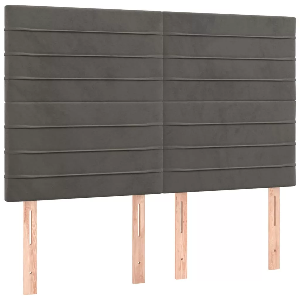 sötétszürke bársony LED-es fejtámla 144x5x118/128 cm