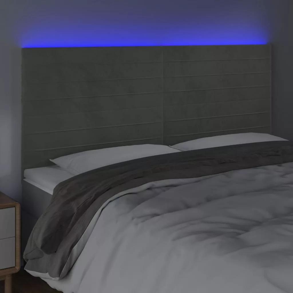 világosszürke bársony LED-es fejtámla 180x5x118/128 cm