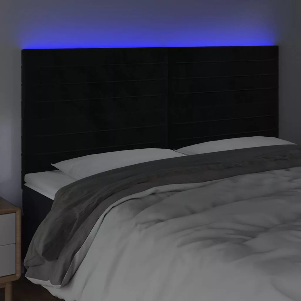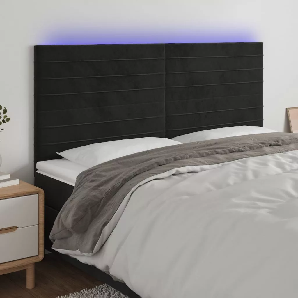 fekete bársony LED-es fejtámla 180x5x118/128 cm