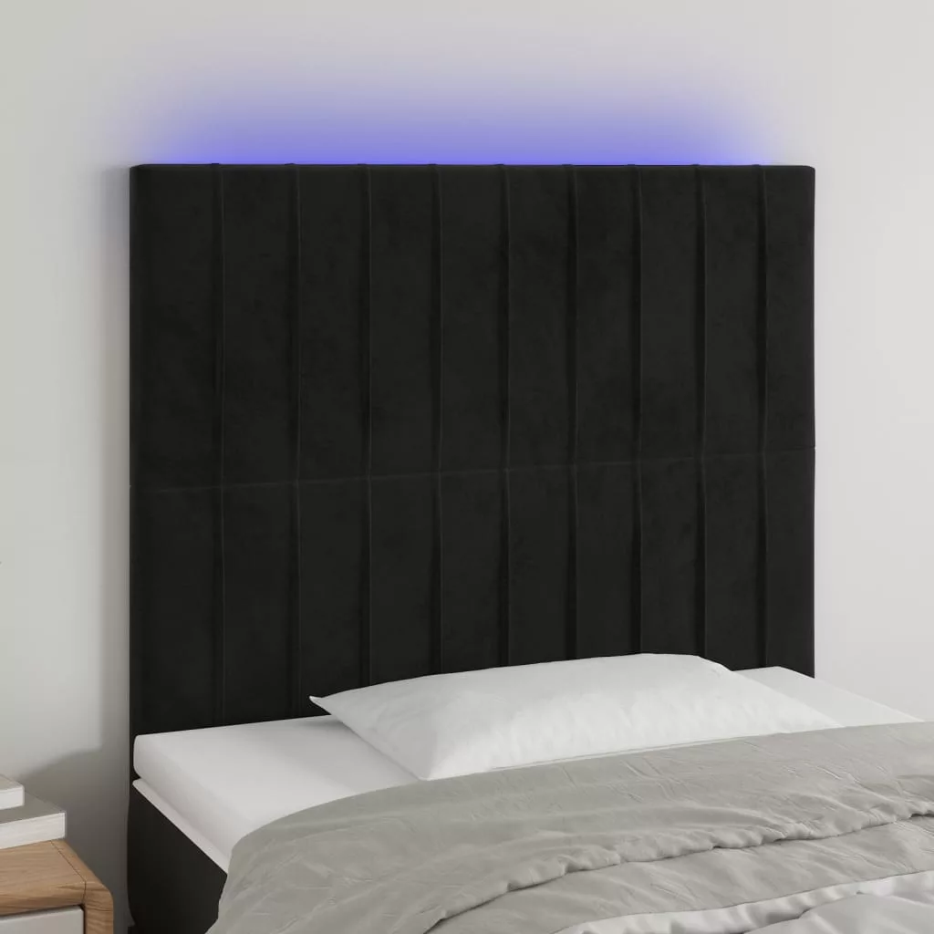 fekete bársony LED-es fejtámla 90x5x118/128 cm
