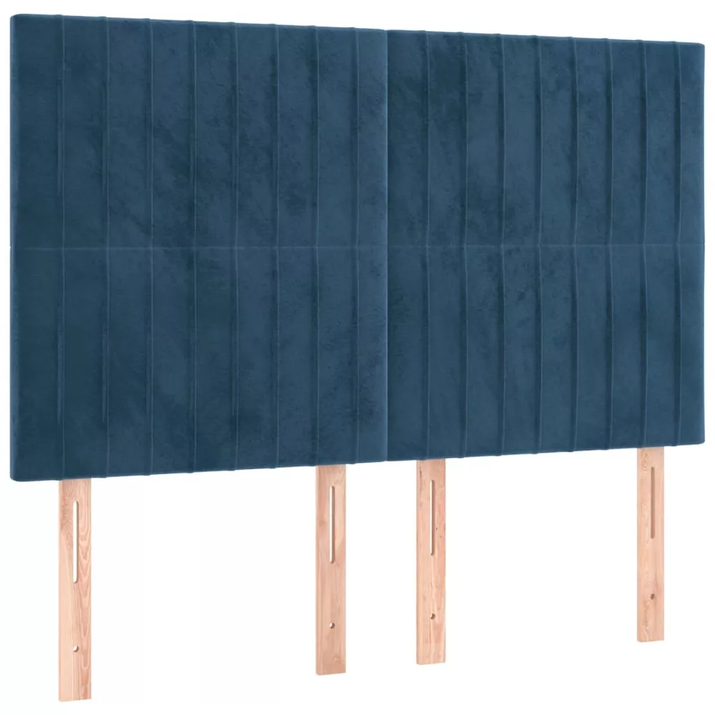 sötétkék bársony LED-es fejtámla 144x5x118/128 cm
