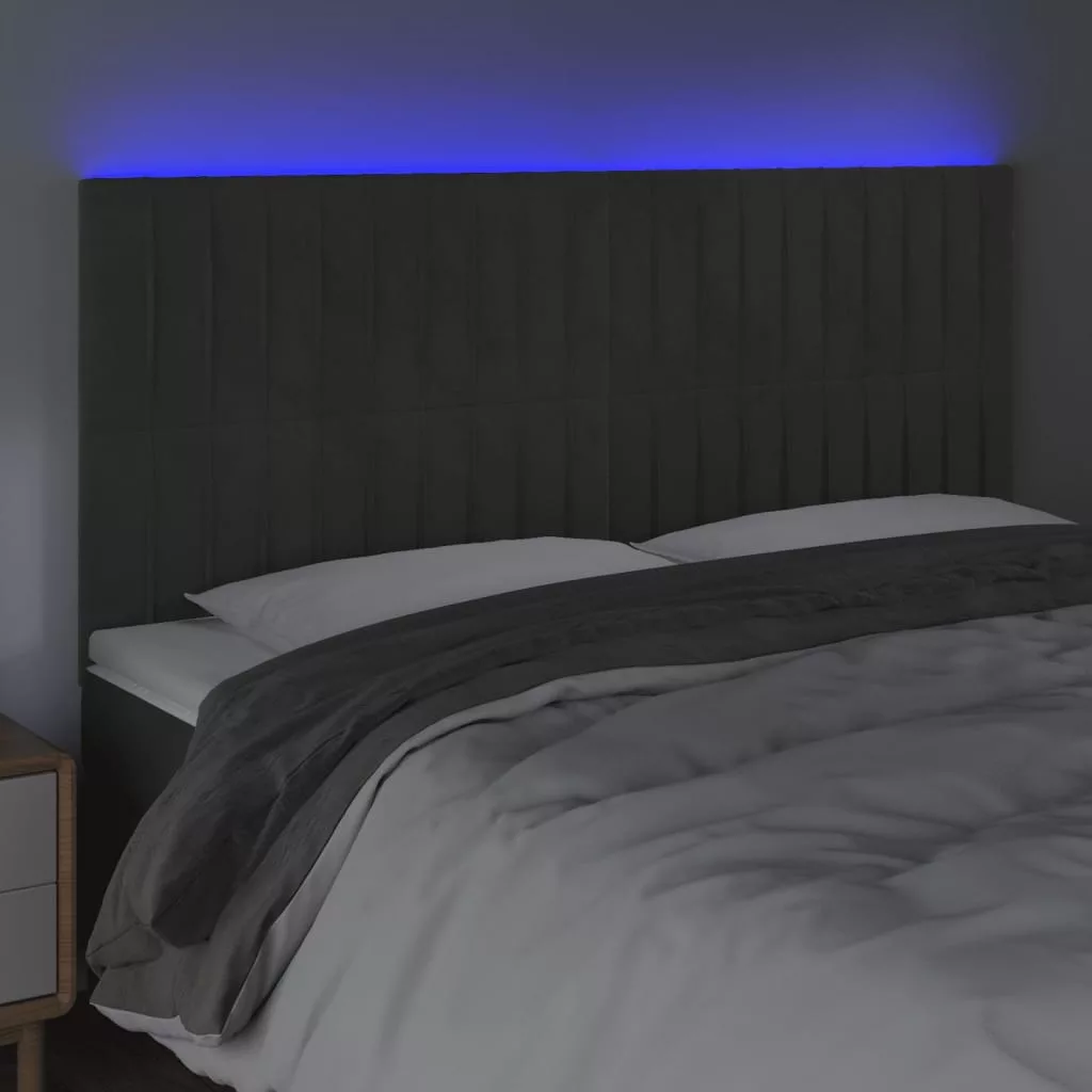 sötétszürke bársony LED-es fejtámla 180x5x118/128 cm