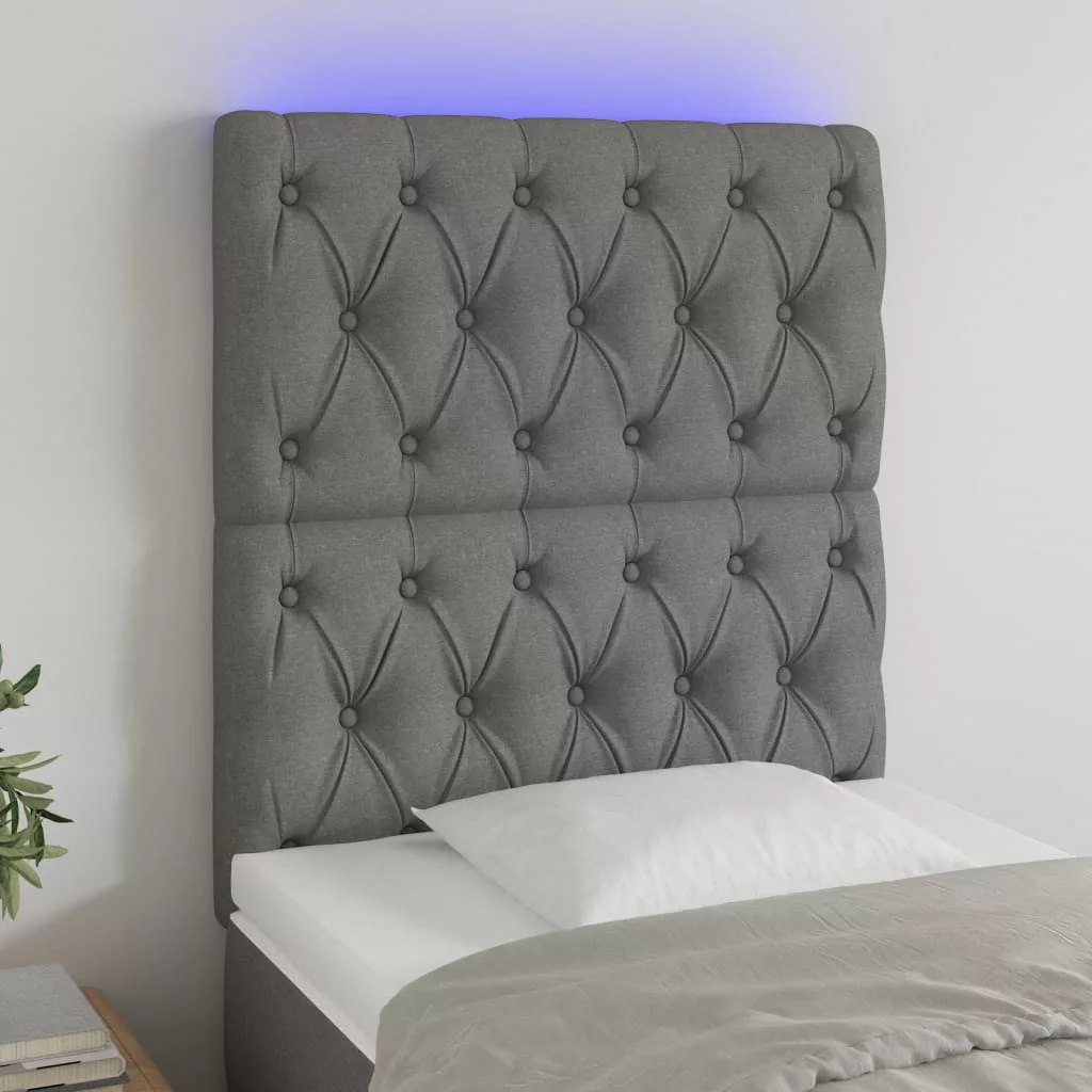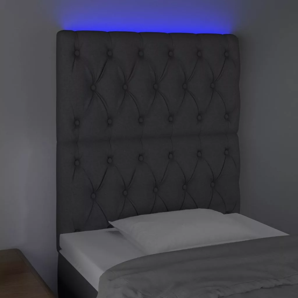 sötétszürke szövet LED-es fejtámla 80x7x118/128 cm