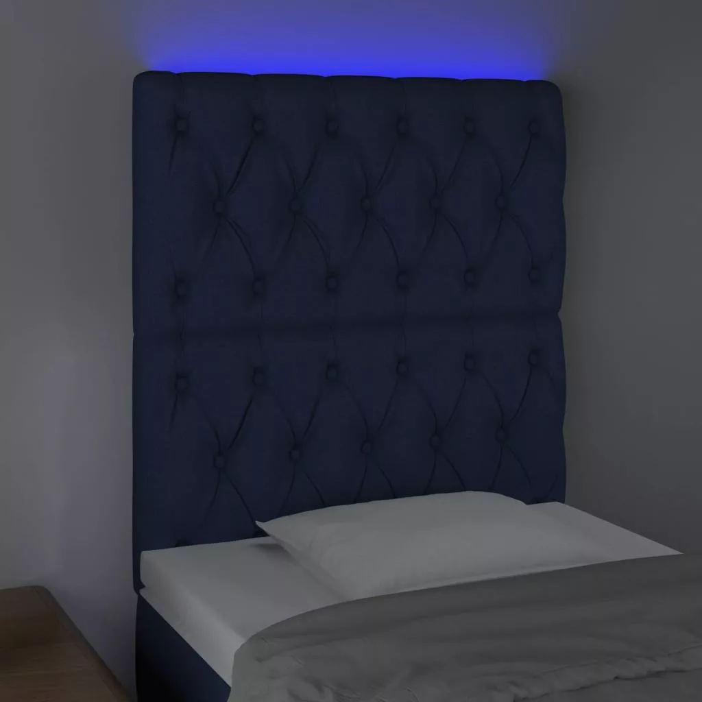 kék szövet LED-es fejtámla 80x7x118/128 cm