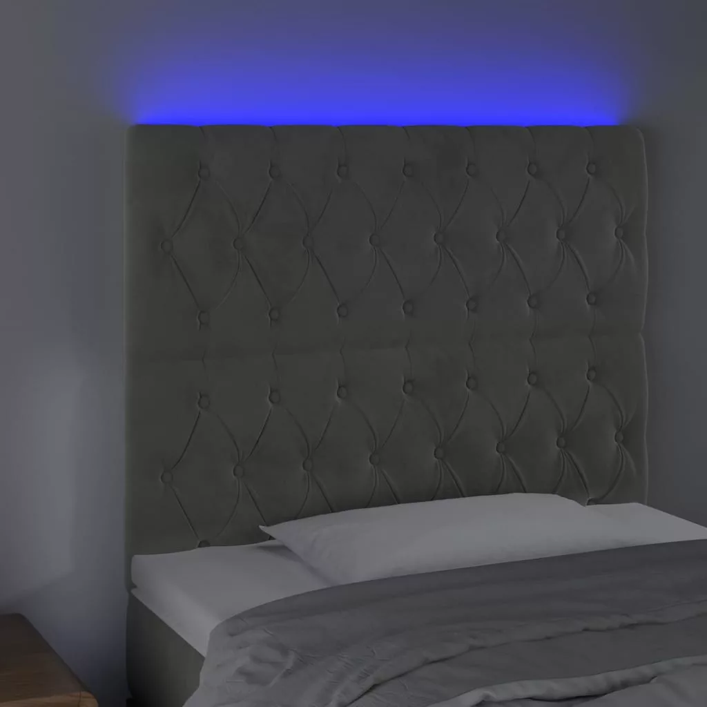 világosszürke bársony LED-es fejtámla 90x7x118/128 cm