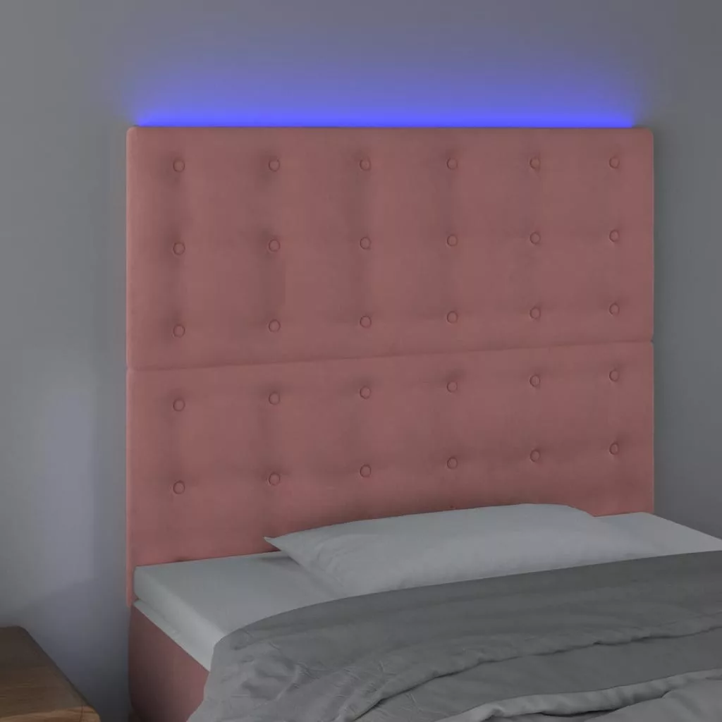 rózsaszín bársony LED-es fejtámla 90x5x118/128 cm
