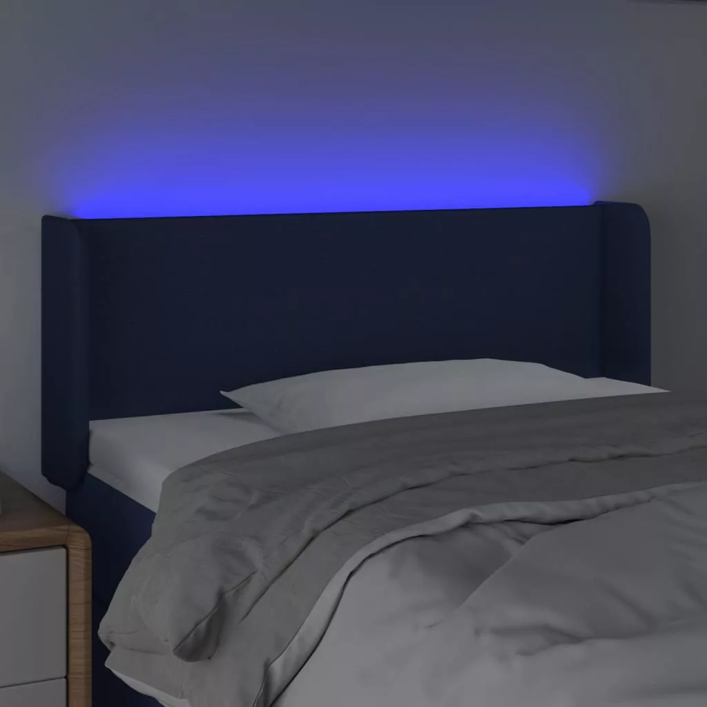 kék szövet LED-es fejtámla 83 x 16 x 78/88 cm