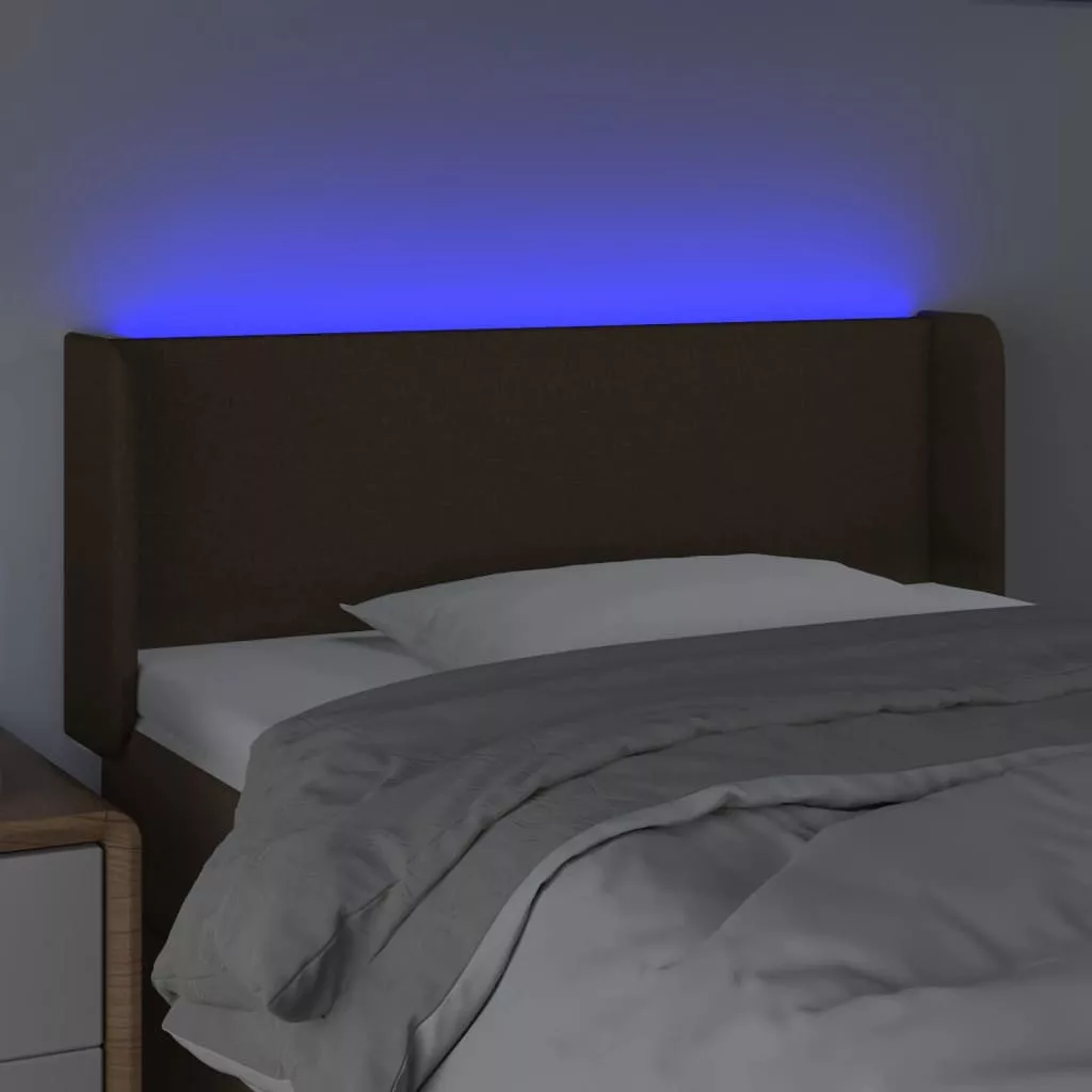 sötétbarna szövet LED-es fejtámla 93 x 16 x 78/88 cm