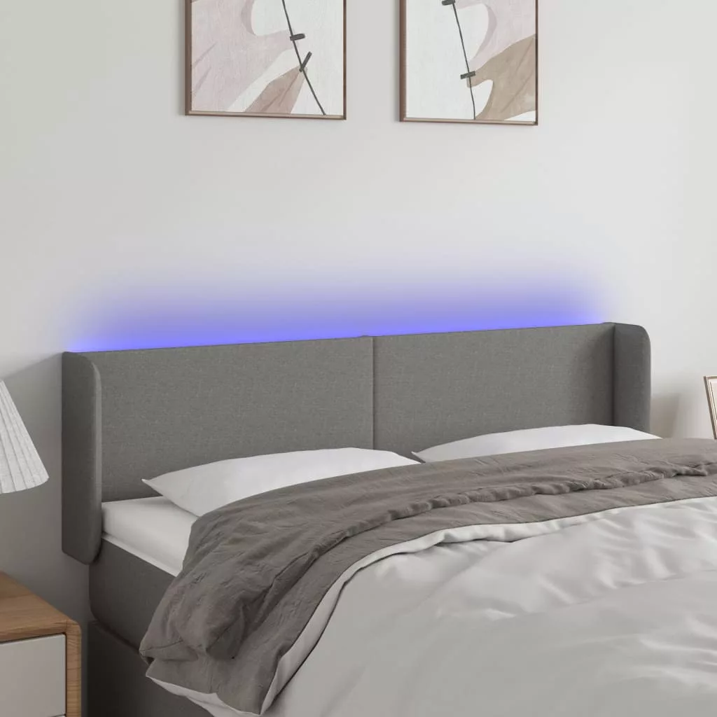 sötétszürke szövet LED-es fejtámla 147 x 16 x 78/88 cm