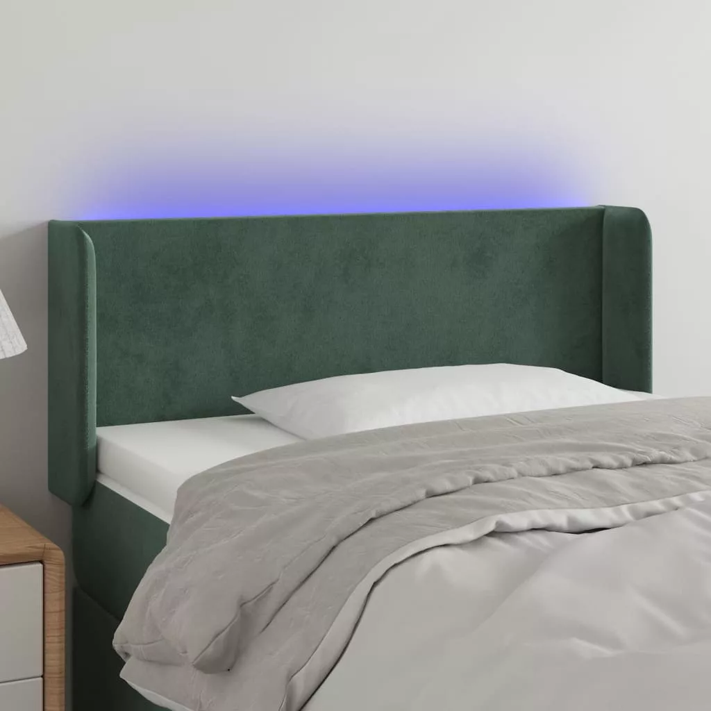 sötétzöld bársony LED-es fejtámla 93 x 16 x 78/88 cm