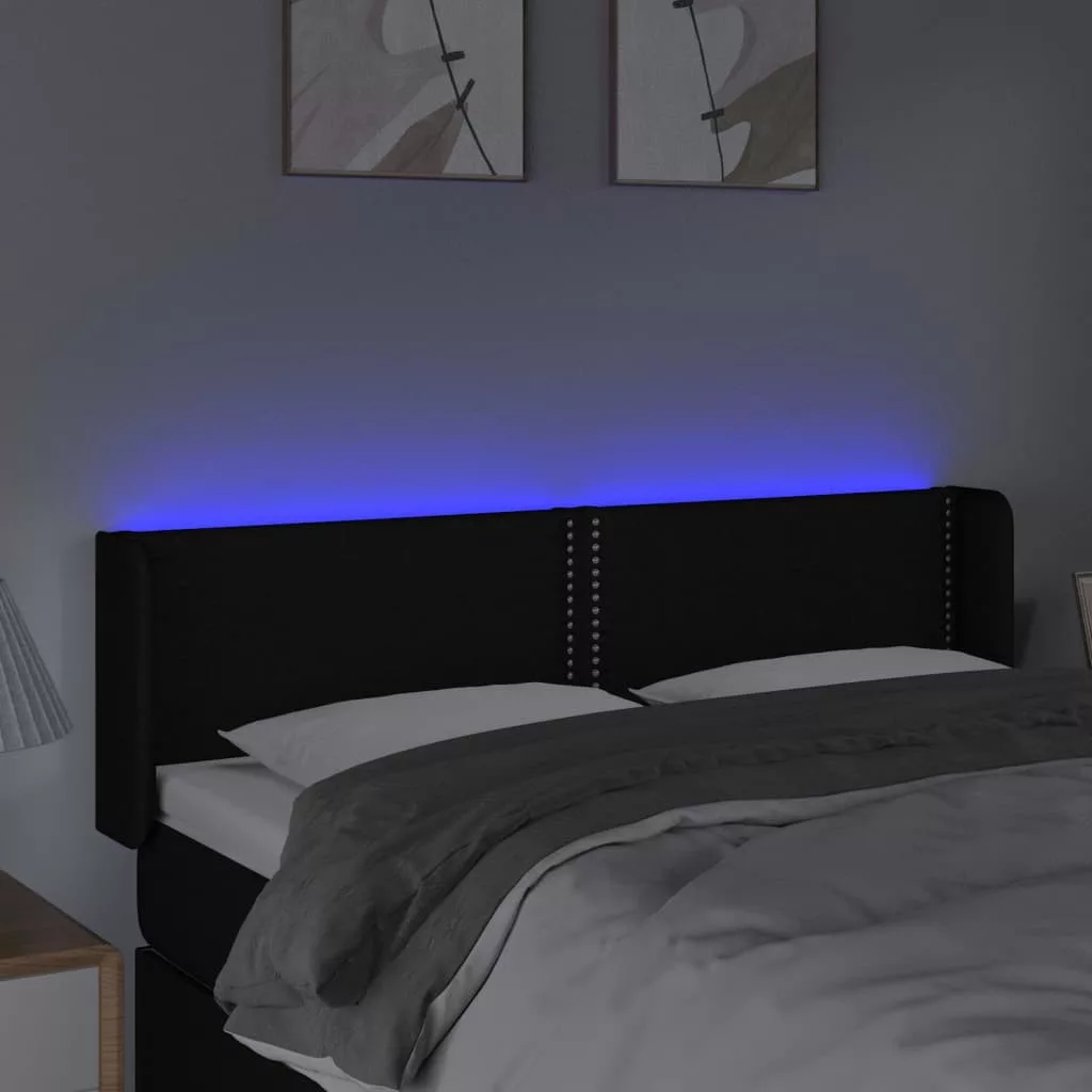 fekete szövet LED-es fejtámla 147 x 16 x 78/88 cm