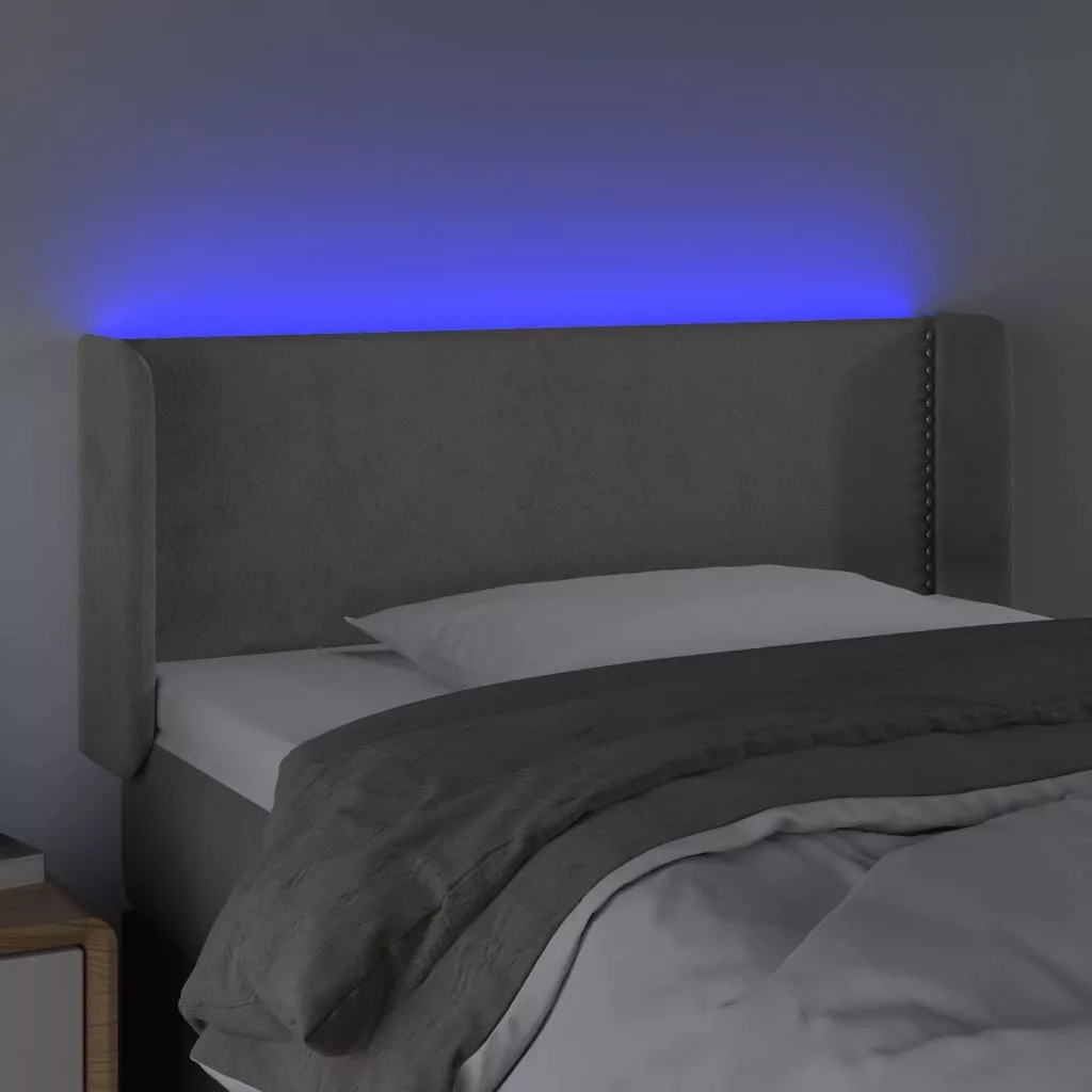 világosszürke bársony LED-es fejtámla 83 x 16 x 78/88 cm