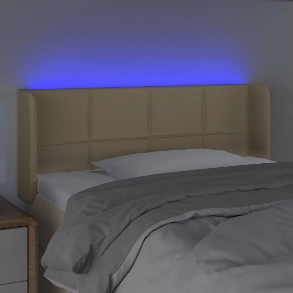 krémszínű szövet LED-es fejtámla 103 x 16 x 78/88 cm