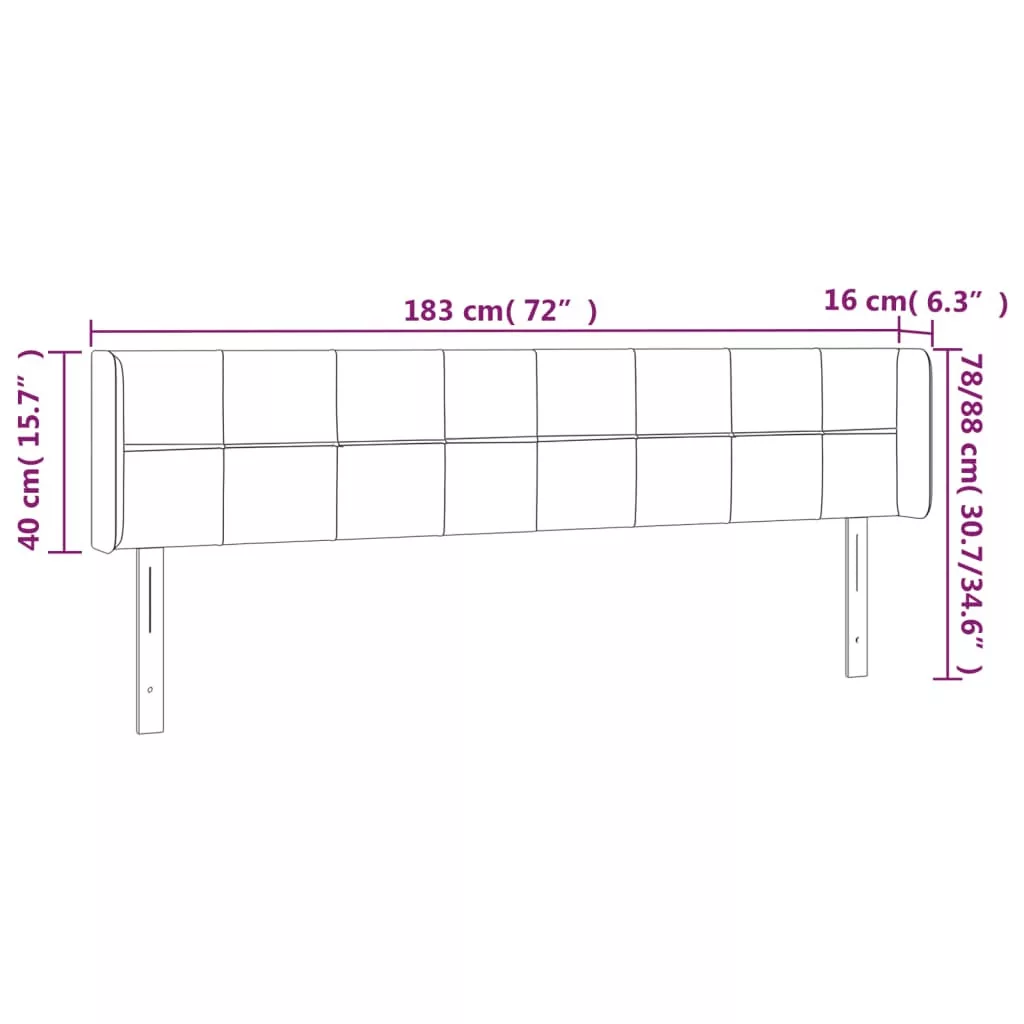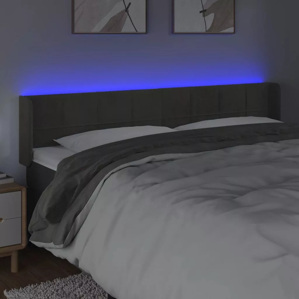 sötétszürke bársony LED-es fejtámla 183 x 16 x 78/88 cm
