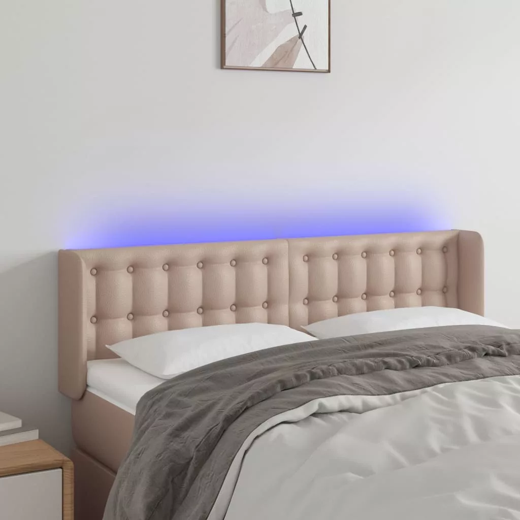 cappuccino színű műbőr LED-es fejtámla 147x16x78/88 cm