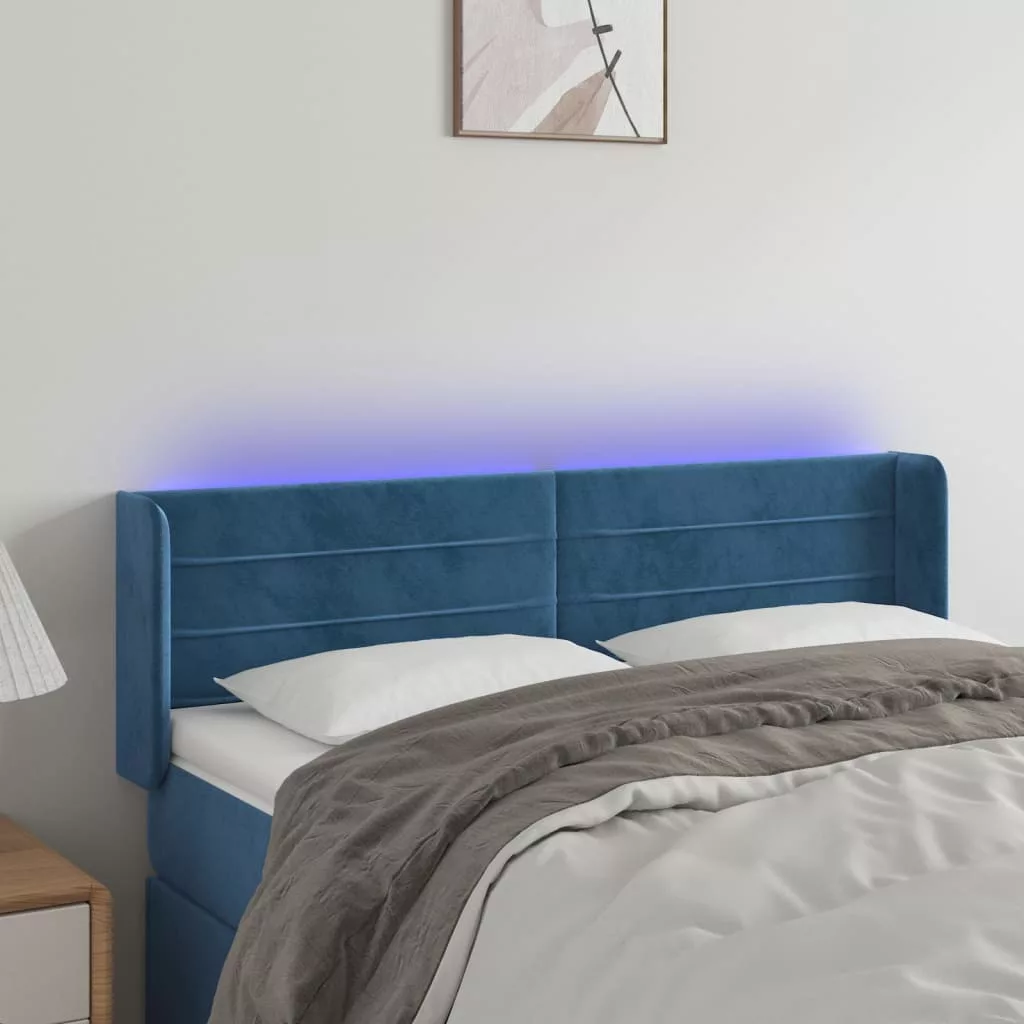 sötétkék bársony LED-es fejtámla 147 x 16 x 78/88 cm