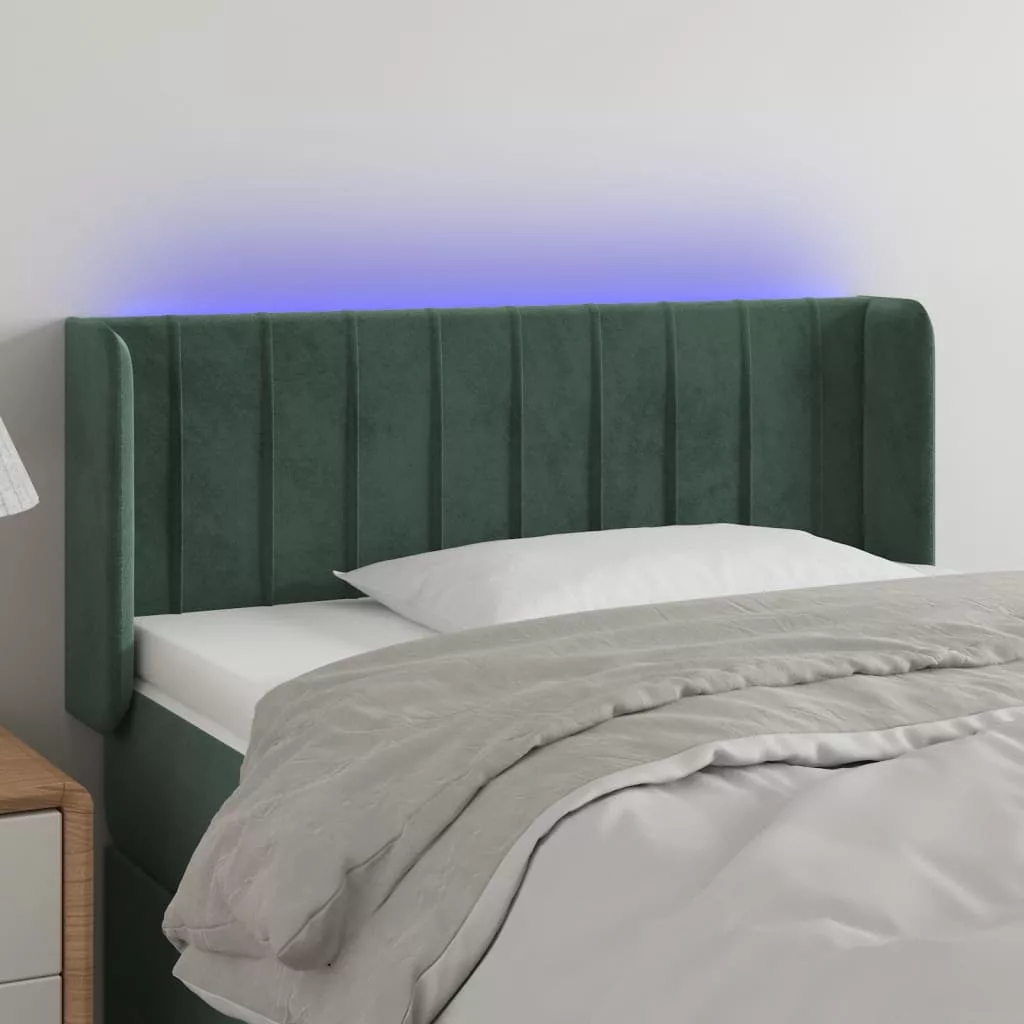 sötétzöld bársony LED-es fejtámla 93 x 16 x 78/88 cm