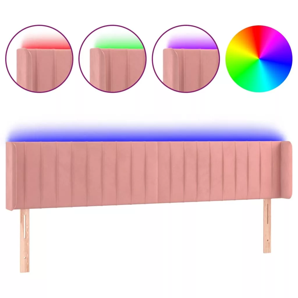 rózsaszín bársony LED-es fejtámla 203x16x78/88 cm