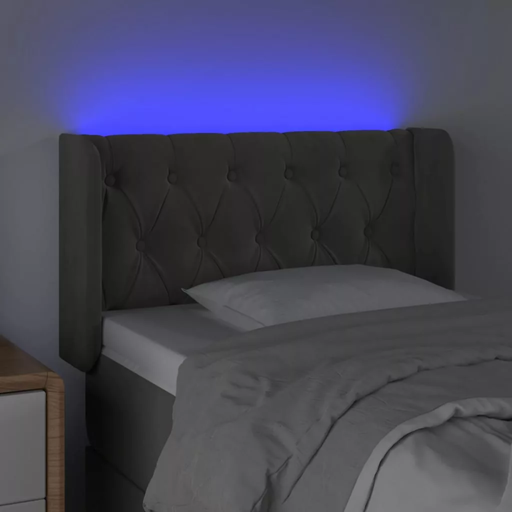 sötétszürke bársony LED-es fejtámla 83 x 16 x 78/88 cm