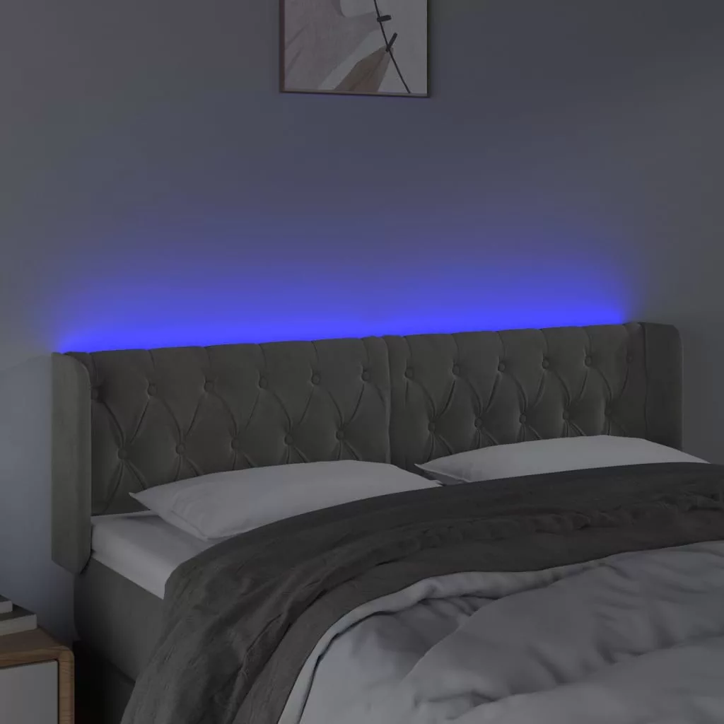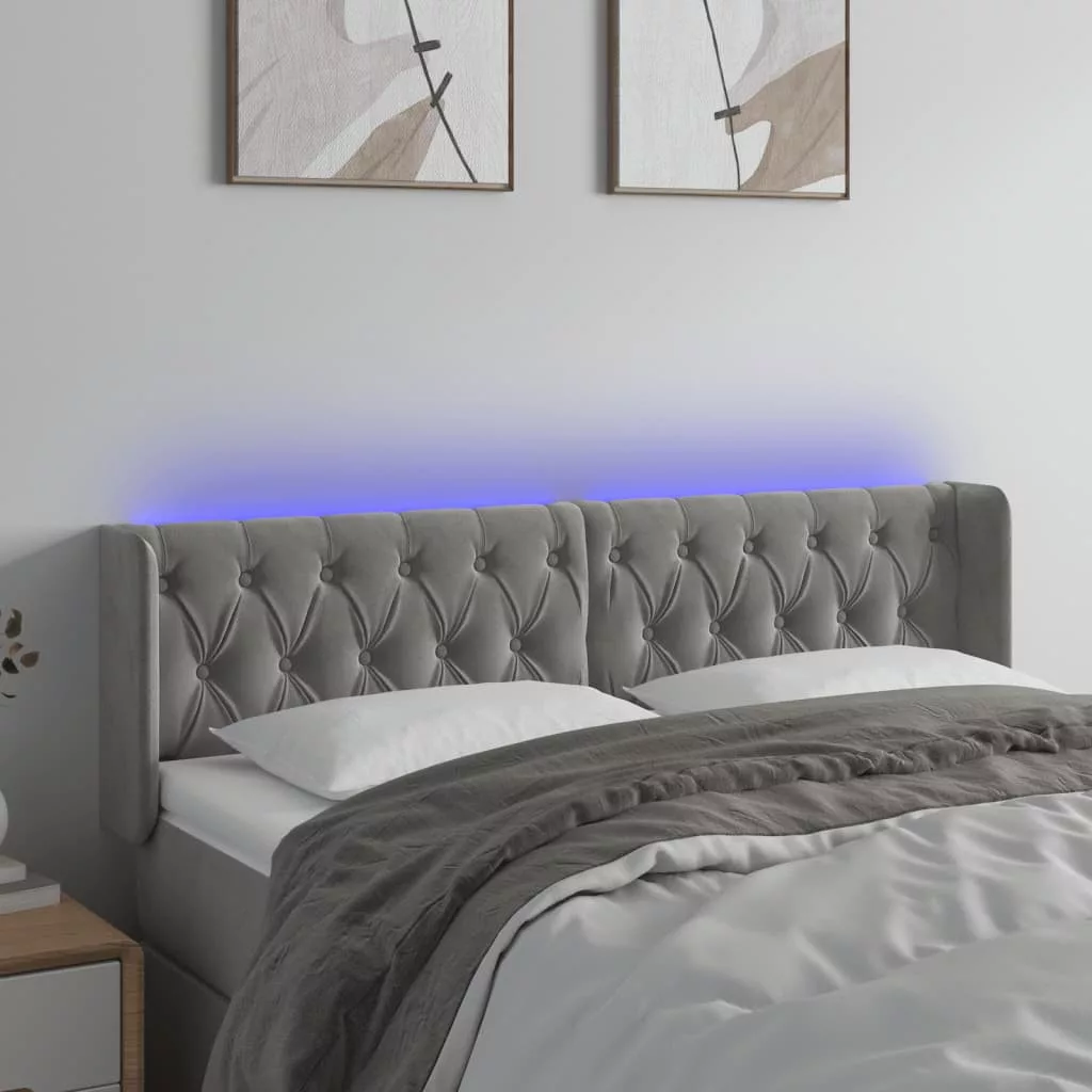 világosszürke bársony LED-es fejtámla 147 x 16 x 78/88 cm