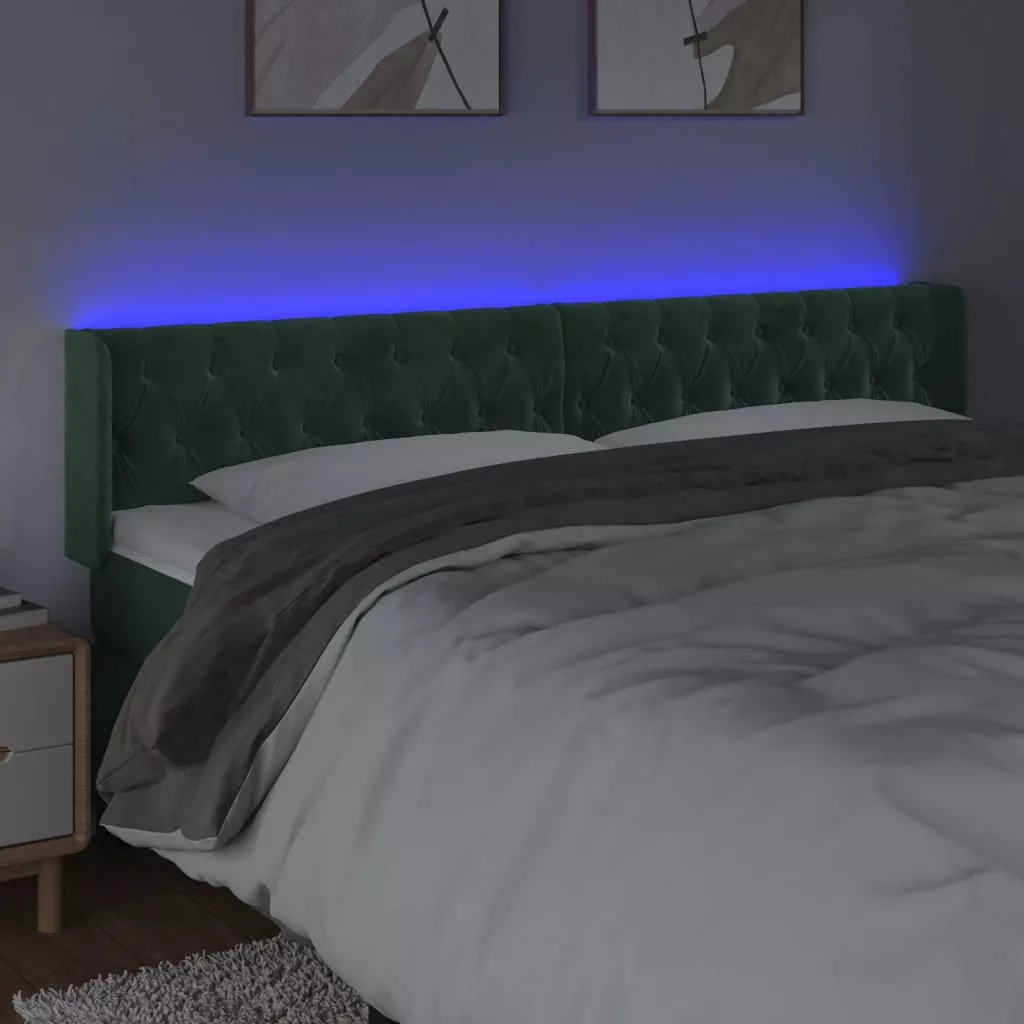 sötétzöld bársony LED-es fejtámla 203 x 16 x 78/88 cm