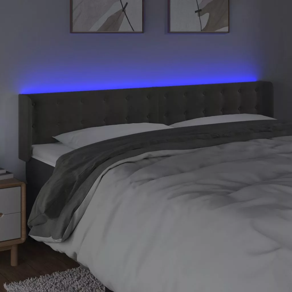 sötétszürke bársony LED-es fejtámla 183 x 16 x 78/88 cm