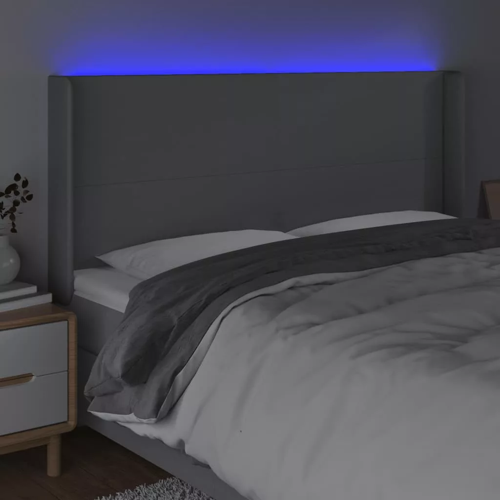 világosszürke szövet LED-es fejtámla 163x16x118/128 cm
