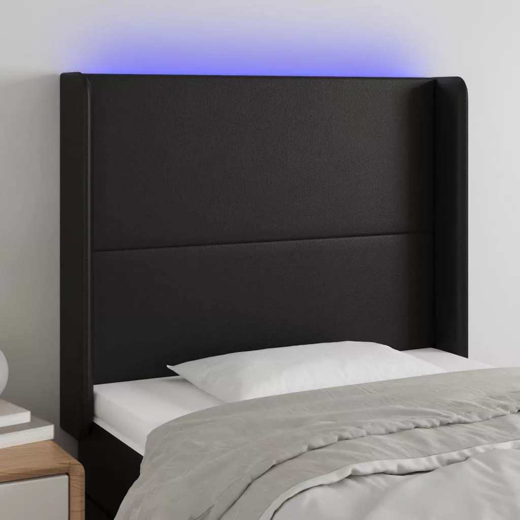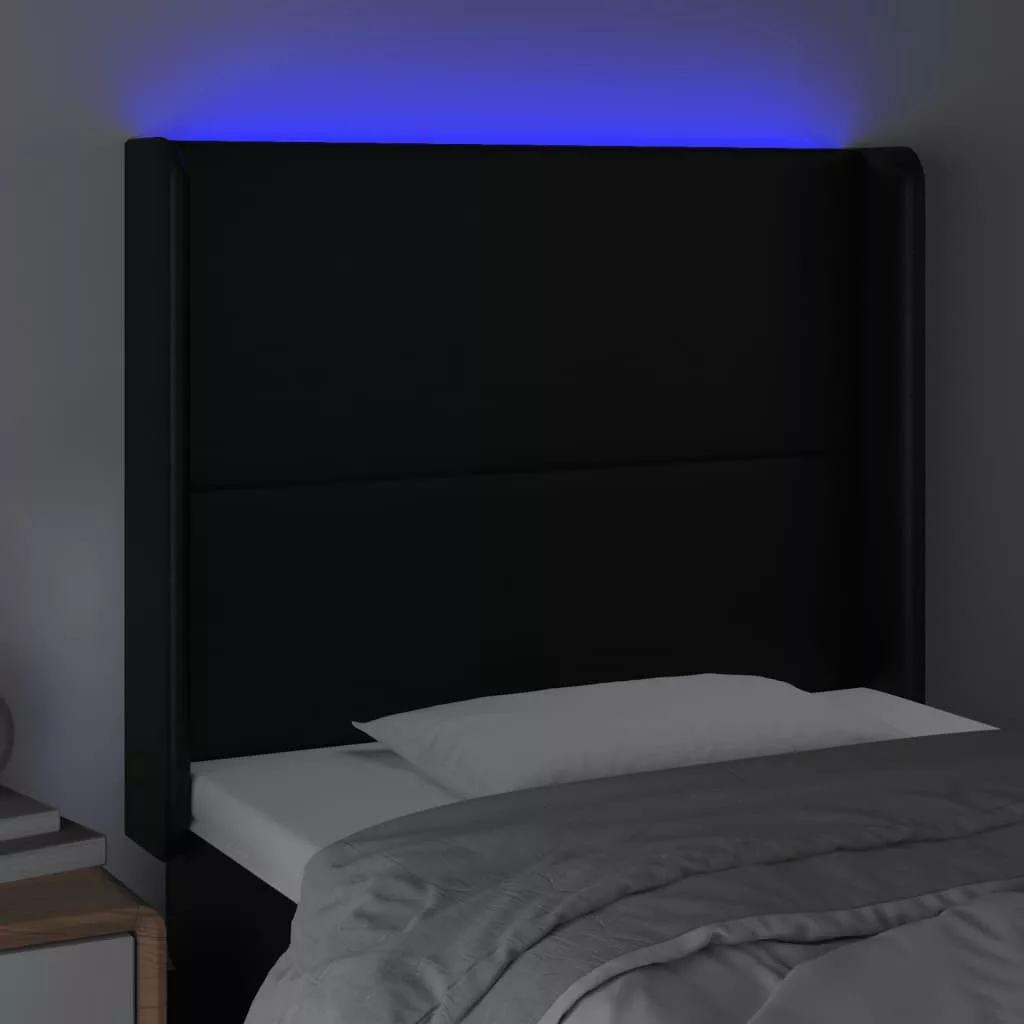 fekete műbőr LED-es fejtámla 83x16x118/128 cm