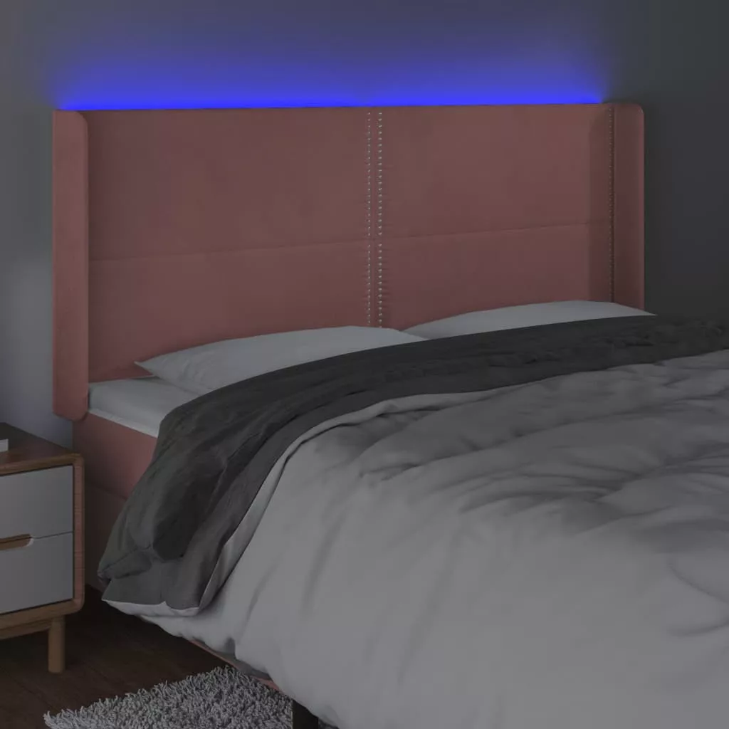 rózsaszín bársony LED-es fejtámla 203x16x118/128 cm