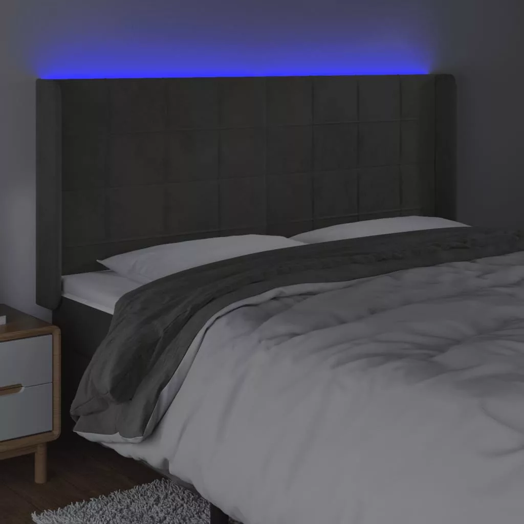 sötétszürke bársony LED-es fejtámla 163x16x118/128 cm