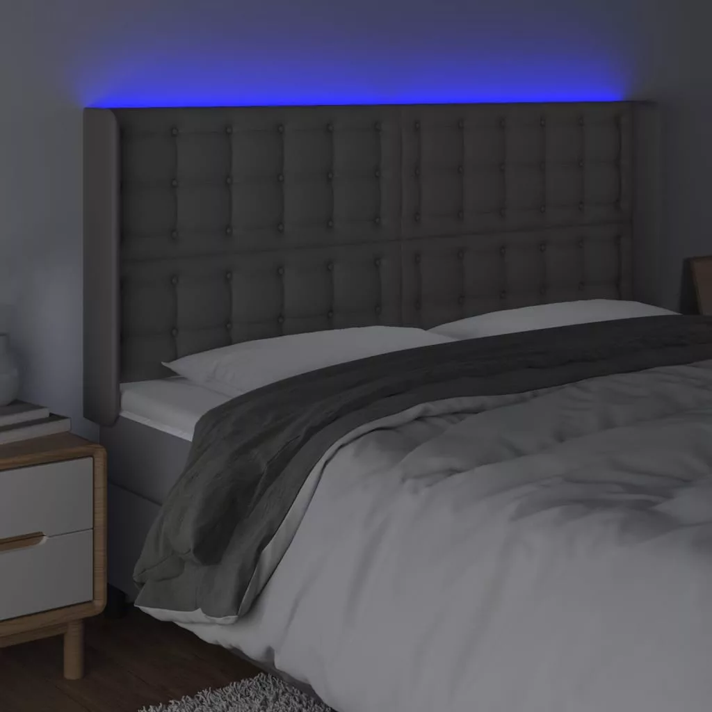 szürke műbőr LED-es fejtámla 203x16x118/128 cm