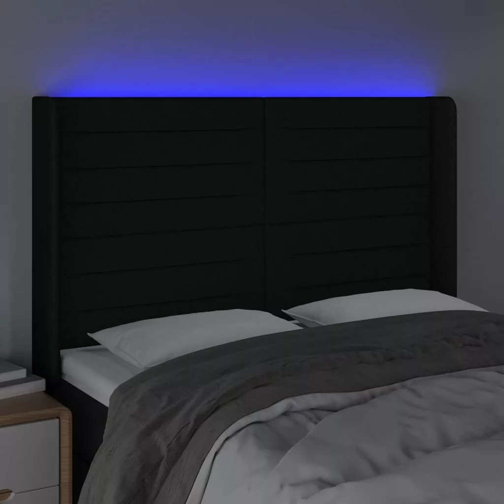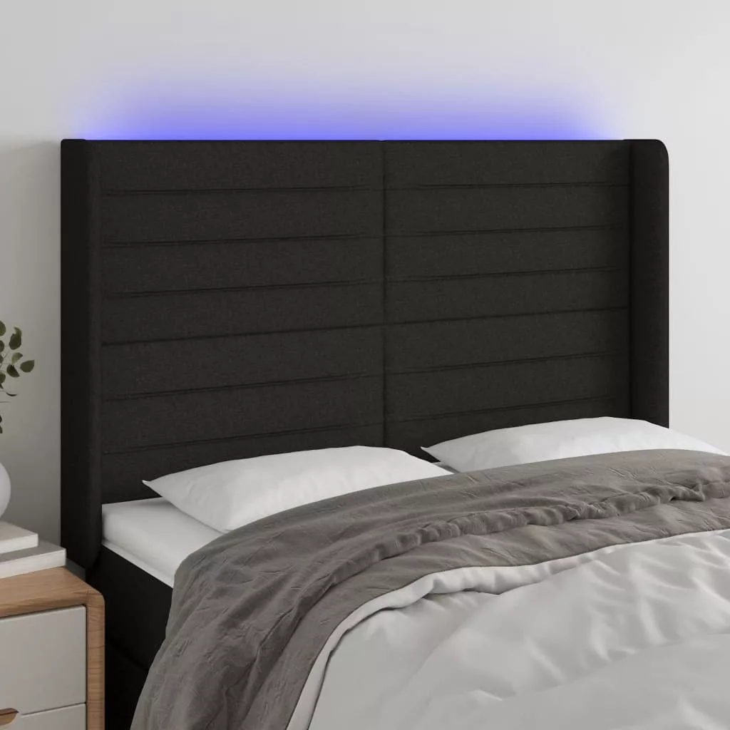 fekete szövet LED-es fejtámla 147x16x118/128 cm