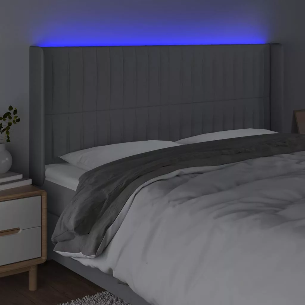 világosszürke szövet LED-es fejtámla 183x16x118/128 cm