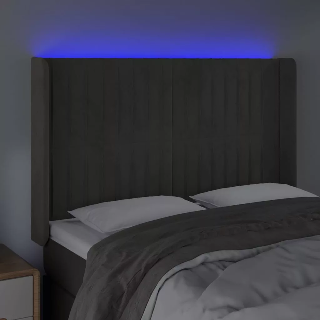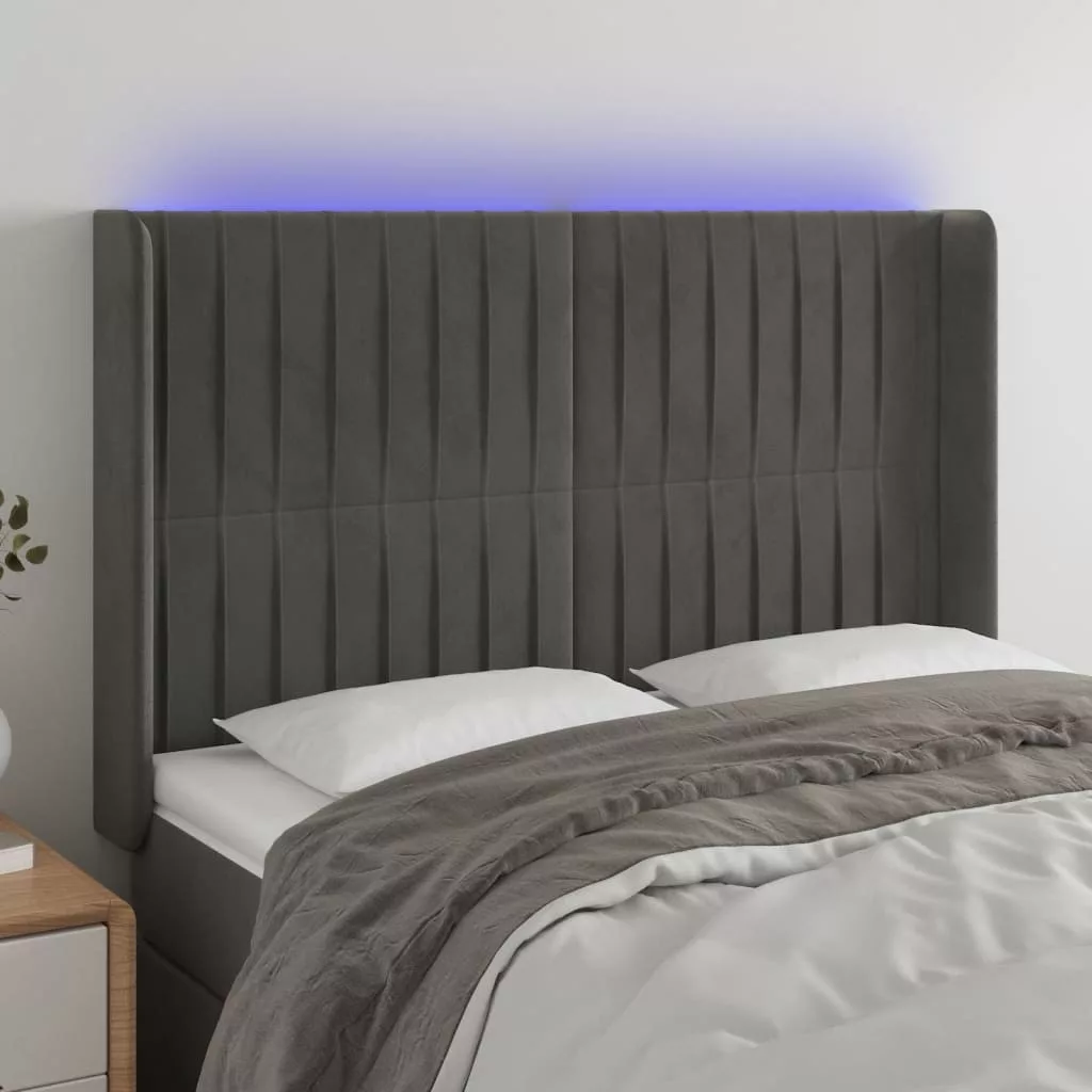 sötétszürke bársony LED-es fejtámla 147x16x118/128 cm