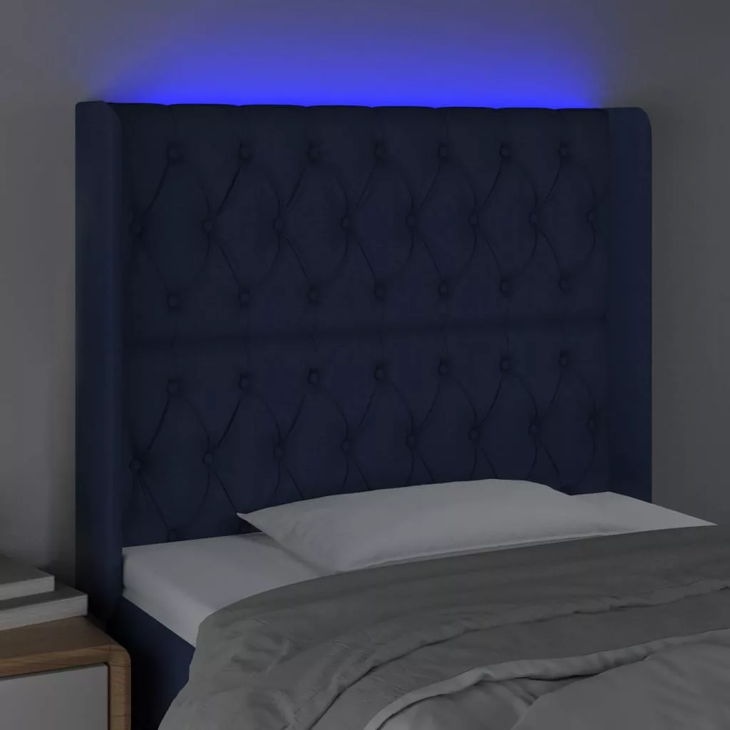 kék szövet LED-es fejtámla 103x16x118/128 cm