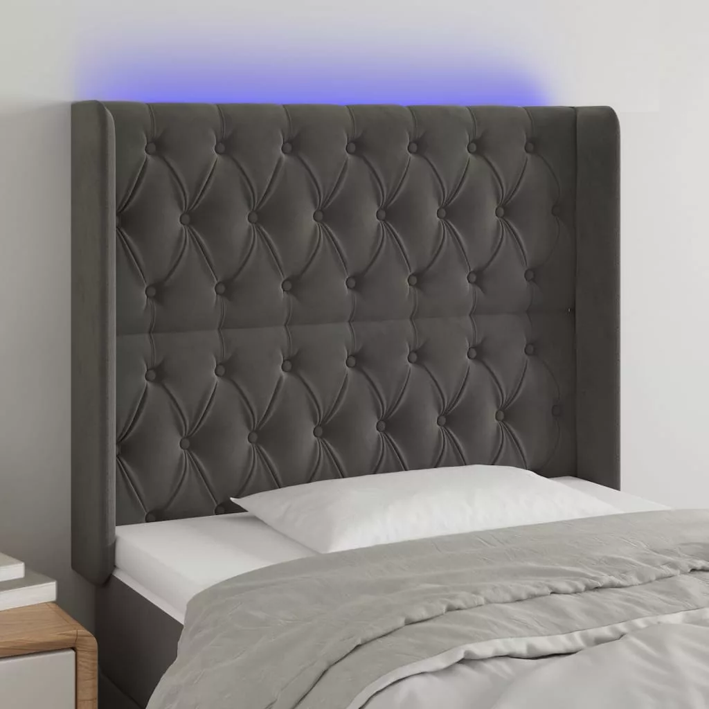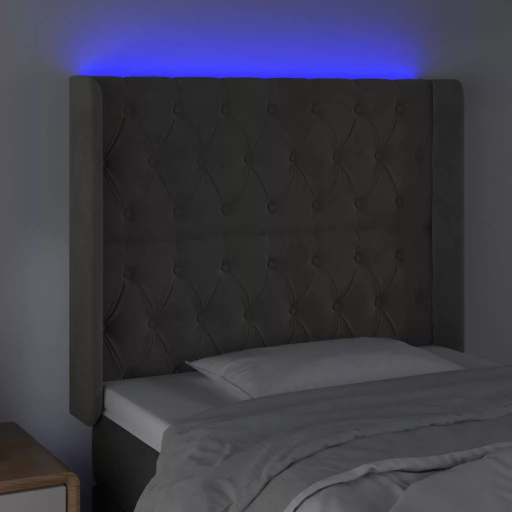 sötétszürke bársony LED-es fejtámla 103x16x118/128 cm