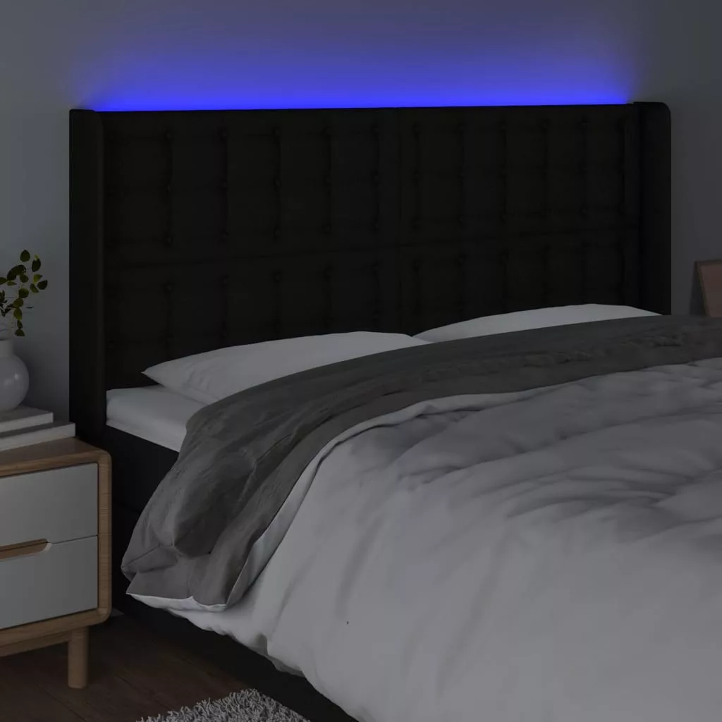 fekete szövet LED-es fejtámla 163x16x118/128 cm